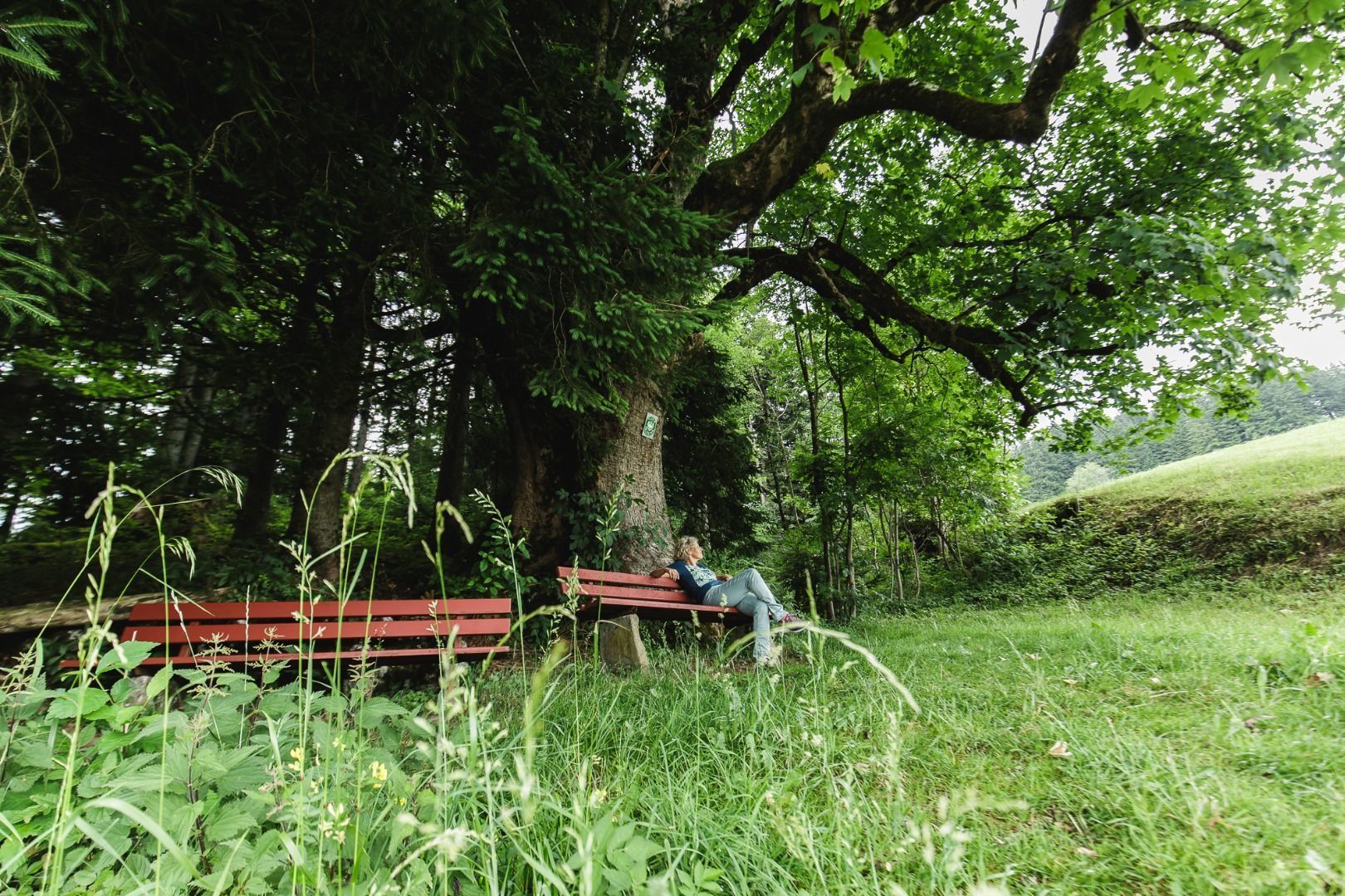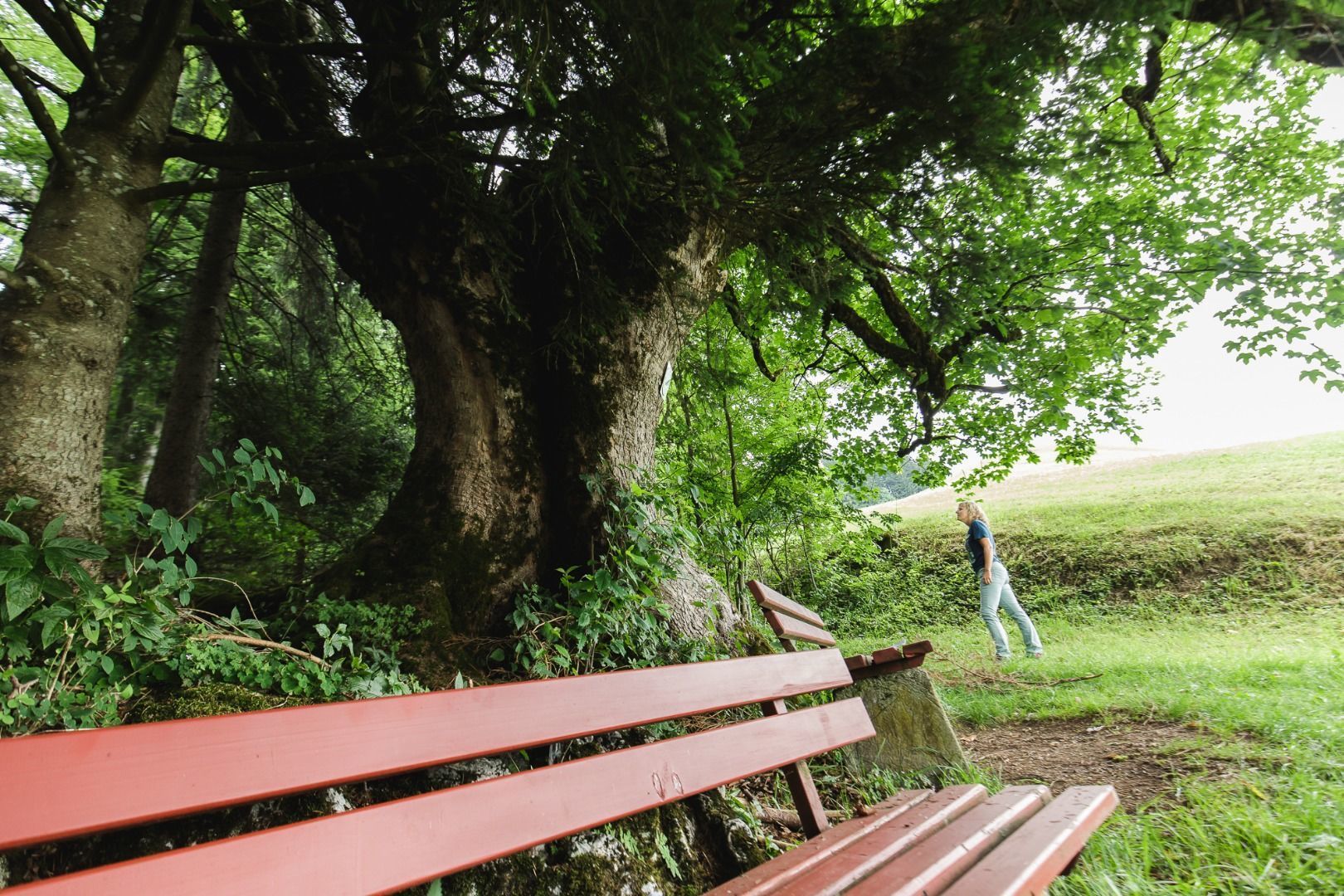 Standfest steht er verwurzelt am Rande des Waldes am Erlerberg. Seit schätzungsweise 300 Jahren trotzt er hier Wind und Wetter und bietet heute Wanderern ein schattiges Plätzchen zum Jausen, Verweilen und Abschalten. Schließen Sie die Augen und nehmen Sie in der Stille der Natur das Rascheln der Blätter in sanften Windböen wahr.