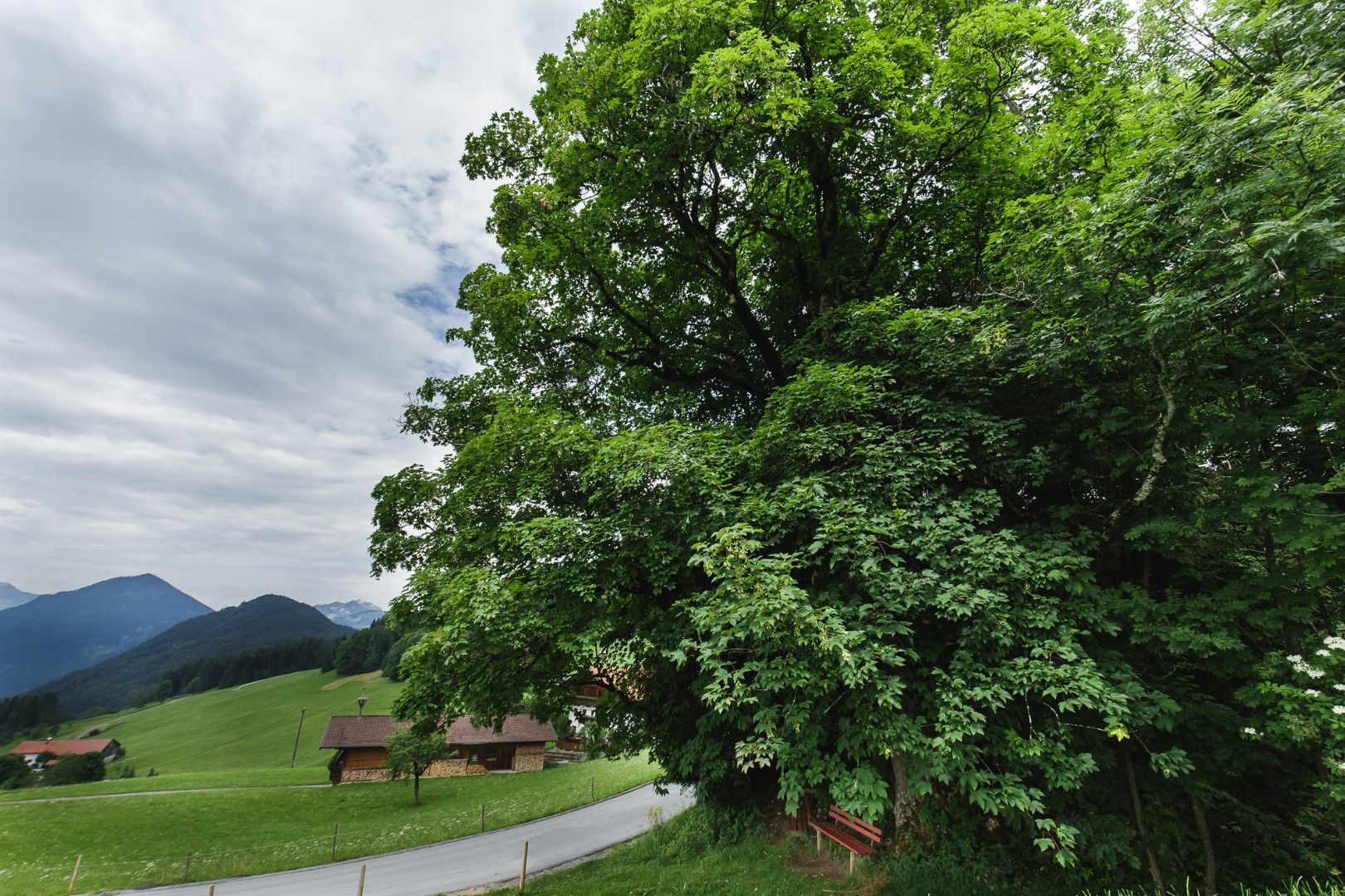 Der mit geschätzten 300 Jahren älteste Baum von Erl ist mit einem Umfang von bis zu sechs Metern ein bedeutsamer Vertreter der weltweit 200 Arten umfassenden Ahorn Familie. Er spendet uns zugleich Schutz und Schatten. Die typische „Finger-Form“ und Vielzahl seiner Blätter nährt den Gedanken, von hier aus mit anderen Ahorn Familienmitgliedern verbunden zu sein. Durch die gespreizte Fingerform seiner Blätter gilt er traditionell auch als abwehrender Schutzbaum. Dazu ist der Ahorn wie viele andere auch ein nährender Baum: Seine Blätter und Früchte sind essbar und den eingedickten Ahornsirup schätzen wir als gesünderen Zuckerersatz. Daher passt er gut in diese Almen Landschaft mit ihrer Vielfalt regional erzeugter und verarbeiteter Gaumengenüsse!