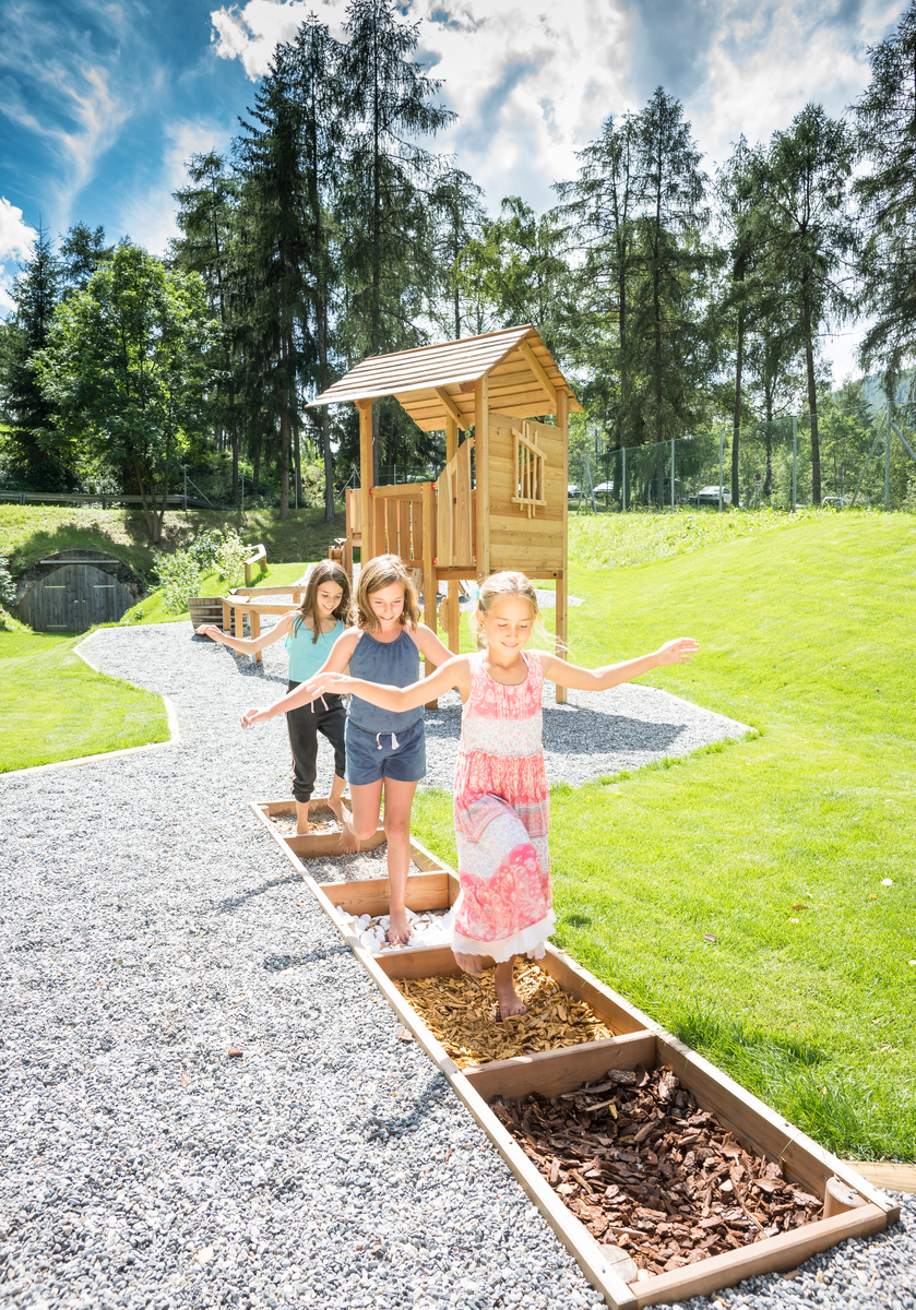 Hallo, ich bin Bibi. Hier am Wasserkraft-Spielplatz meine Freundin Bibirella und ich ganz in unserem Element. Denn hier rauscht’s, blubbert’s und sprudelt’s an allen Ecken. Und wenn ich dran denke, wie viel Wasser schon über den Fendler Bach zu Tal geflossen ist, bekomm ich gleich ganz feuchte Augen.