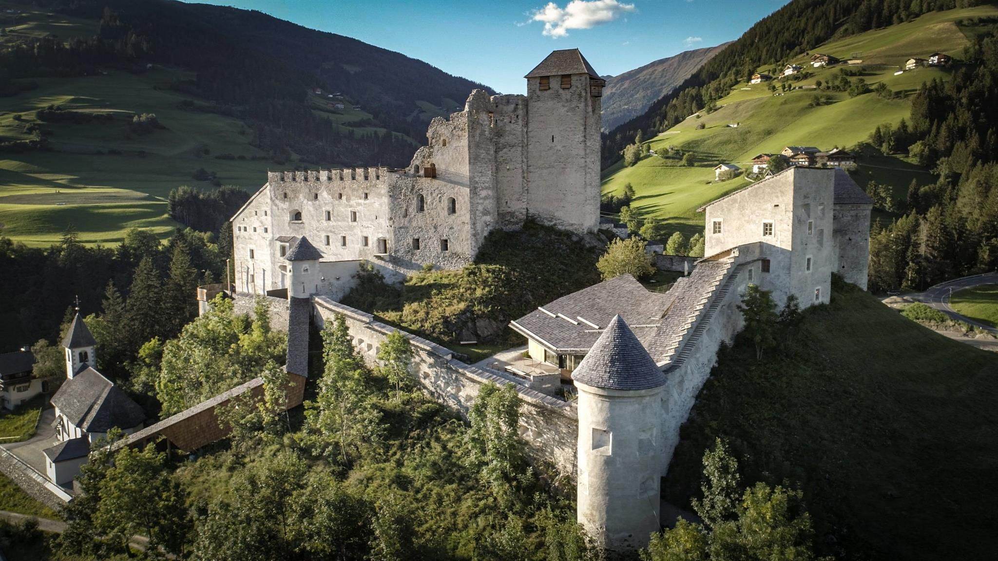 Burg Heinfels thront am Felsen wie eine Königin. Die Höhenburg wurde vier Jahre lang von Grund auf restauriert. Die Besucher können im Rahmen der Panorama-Tour auf eigene Faust die weitläufige Anlage mit Wehrgängen, Höfen, Türmen und fantastischen Aussichten erkunden. In der geführten Burgtour (Kostenpflichtig, Anmeldung erforderlich) werden Burgkammern, Säle und die Burgkapelle geöffnet: Geschichte und Geschichten werden mit Modellen, Animationen und interaktiven Landkarten großen und kleinen Zeitreisenden lebendig vermittelt.