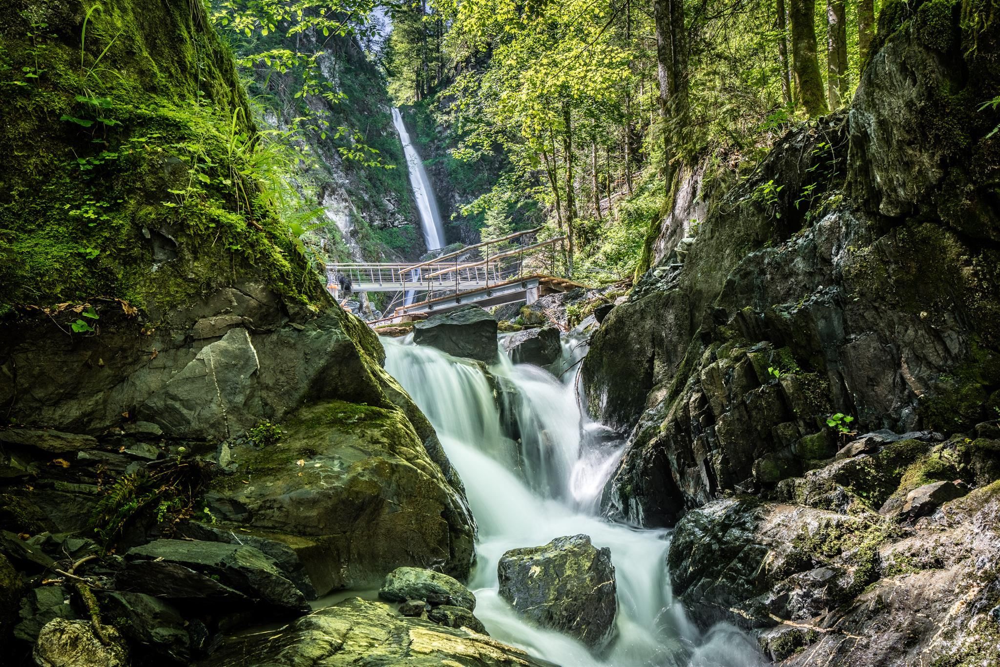 Erfrischung finden Wanderer an heißen Tagen bei einem Streifzug zwischen Wiesen und Wäldern vorbei am Eifersbacher Wasserfall in Winkl-Schattseite bei St. Johann in Tirol. Das Wasser des Wasserfalls stürzt hier über 25 Meter ins Tal. Dieses beeindruckende Naturschauspiel sollten Sie sich auf keinen Fall entgehen lassen.