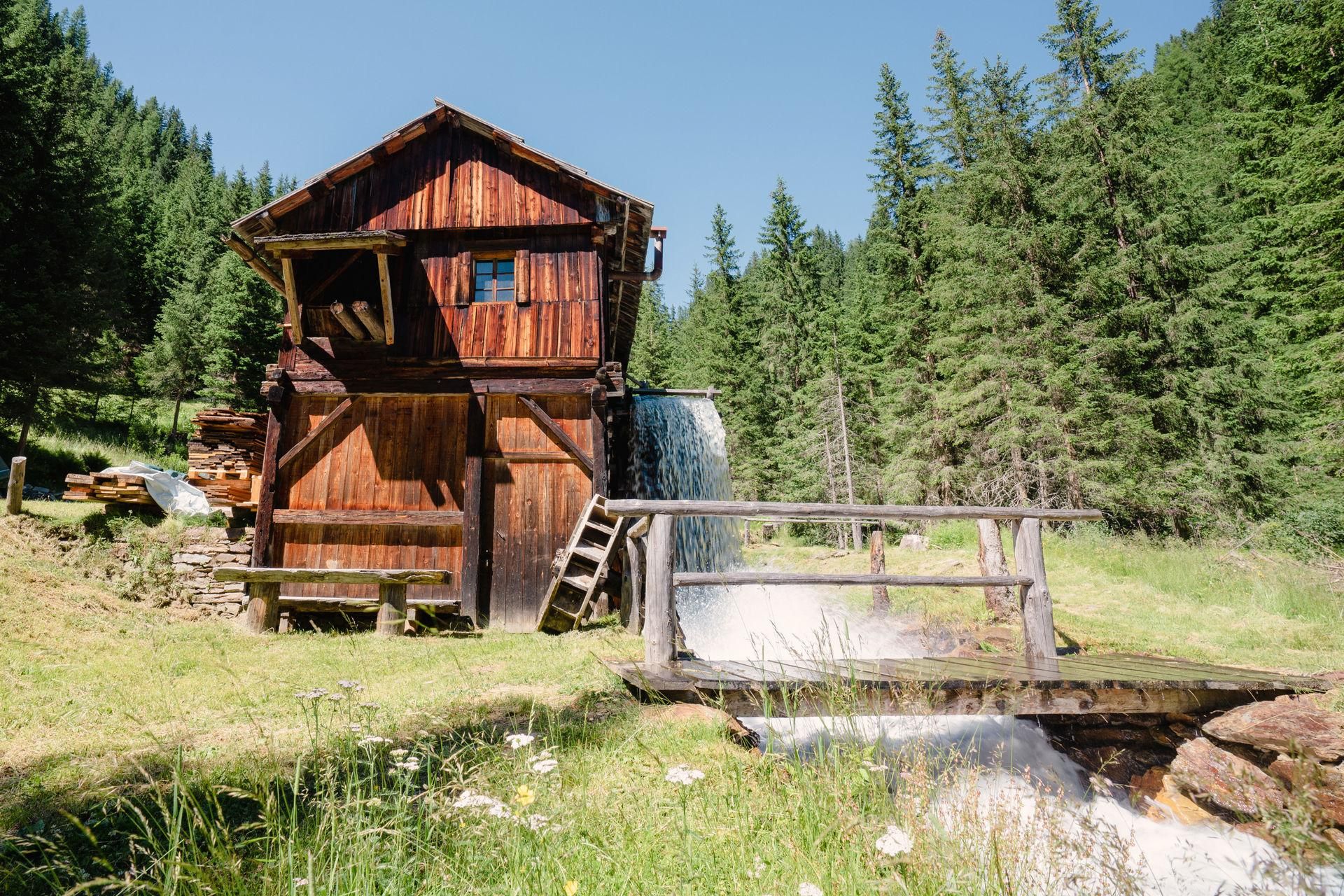 Ein Ensemble bestehend aus einer Mühle, einem Venezianschen Gatter-Sägewerk, einer Lodenstampfe, einer Almhütte sowie einem Einhof zeigt das Leben in den Alpen vergangener Zeiten mit all seinen Herausforderungen, Handwerken, Traditionen, landwirtschaftlichen Geräten, Holzbauten und der Kraft des Wassers.