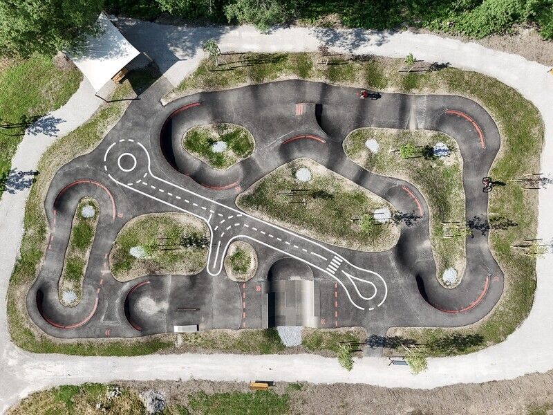 Das Herzstück der Anlage ist der Pumptrack mit Strecken für alle Altersgruppen – von einfachen Abschnitten für Laufräder bis zu Herausforderungen für Geübte. Ein Bereich dient der Vorbereitung auf die Radfahrprüfung.Direkt neben dem Funpark wurde ein großer Spielplatz errichtet, der mit seinem vielfältigen Angebot zahlreiche Spielmöglichkeiten für Kinder bietet.