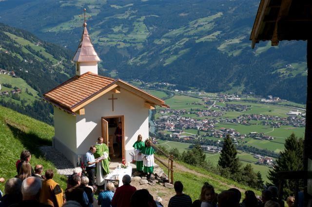 Kapelle-Johannes der Täufer Am 11. September 2010 wurde auf der Gschirraste die neu errichtete Kapelle eingeweiht. Michael Schöser stiftete das Gotteshaus in Erinnerung an Fürsterzbischof Johannes Geisler, der im Gschirr aufgewachsen war und als Dank für Genesung von schwerer Krankheit. Die Kapelle wird unter den Schutz von Johannes dem Täufer gestellt, den Altarraum ziert unter anderem die bei Sanierungsarbeiten auf dem Dachboden gefundene Monstranz. Zelebriert wurde der Weihegottesdienst von Gastpfarrer Rolf Merkle, der als Hüttenpächter seine Freizeit häufig am Schwendberg verbringt.Das Bläserduo Walter Sauerwein-Adi Rinner und der Kirchenchor Hippach umrahmten die stimmungsvolle Feier. Im Anschluß wurden die zahlreichen Gäste kulinarisch verwöhnt und konnten bei Bilderbuch-Herbstwetter angenehme Stunden mit "Schneidig und Krump" verleben. Ein herzliches " Vergelt`s Gott" an alle Helfer und Spender für die tatkräftige Unterstützung beim Bau der Kapelle!