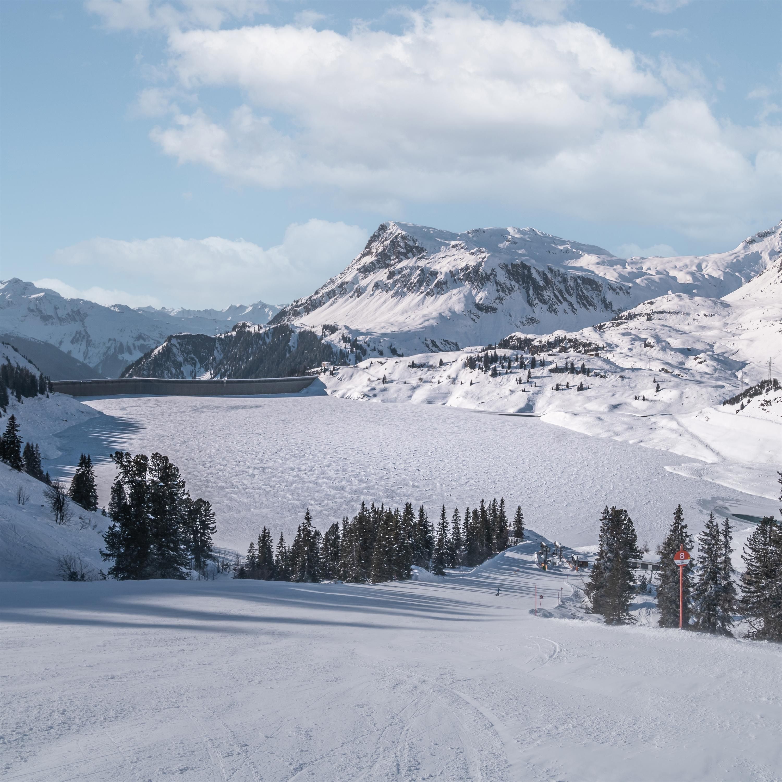 Auf 1.809 Metern Seehöhe beeindruckt der Kopssee mit seiner türkisblauen Wasseroberfläche, umgeben von malerischer Berglandschaft. 1967 wurde er erstmals vollständig aufgestaut. Heute zählt der Speichersee zu den technisch größten Errungenschaften der Region: mit einem Einzugsgebiet von 170 Quadratkilometern und einem Nutzinhalt von knapp 43 Millionen Kubikmetern. Im Sommer lädt der rund fünf Kilometer lange Rundweg zu schönen Blicken auf See und Gipfel ein. Ganzjährig erreichbar, ist der Aussichtspunkt einer der ruhigeren Fotospots in Galtür.