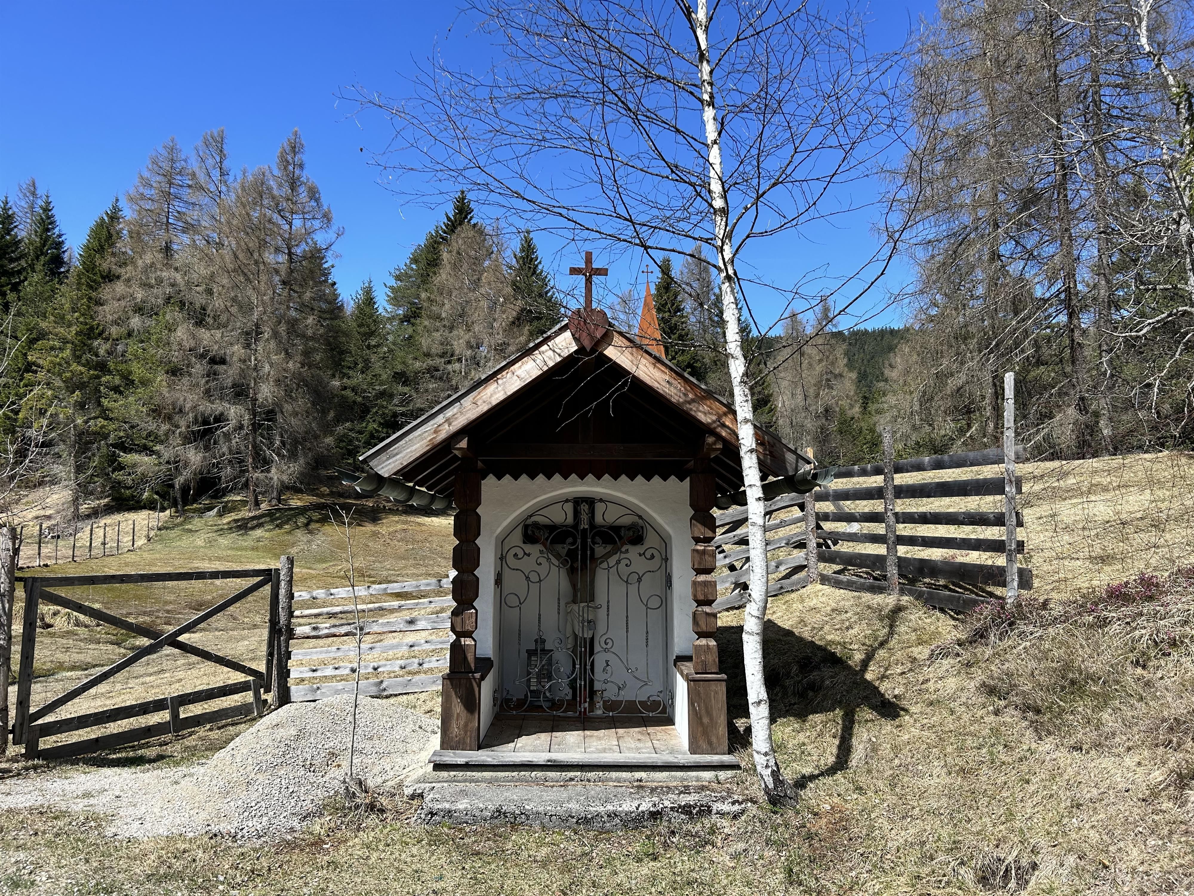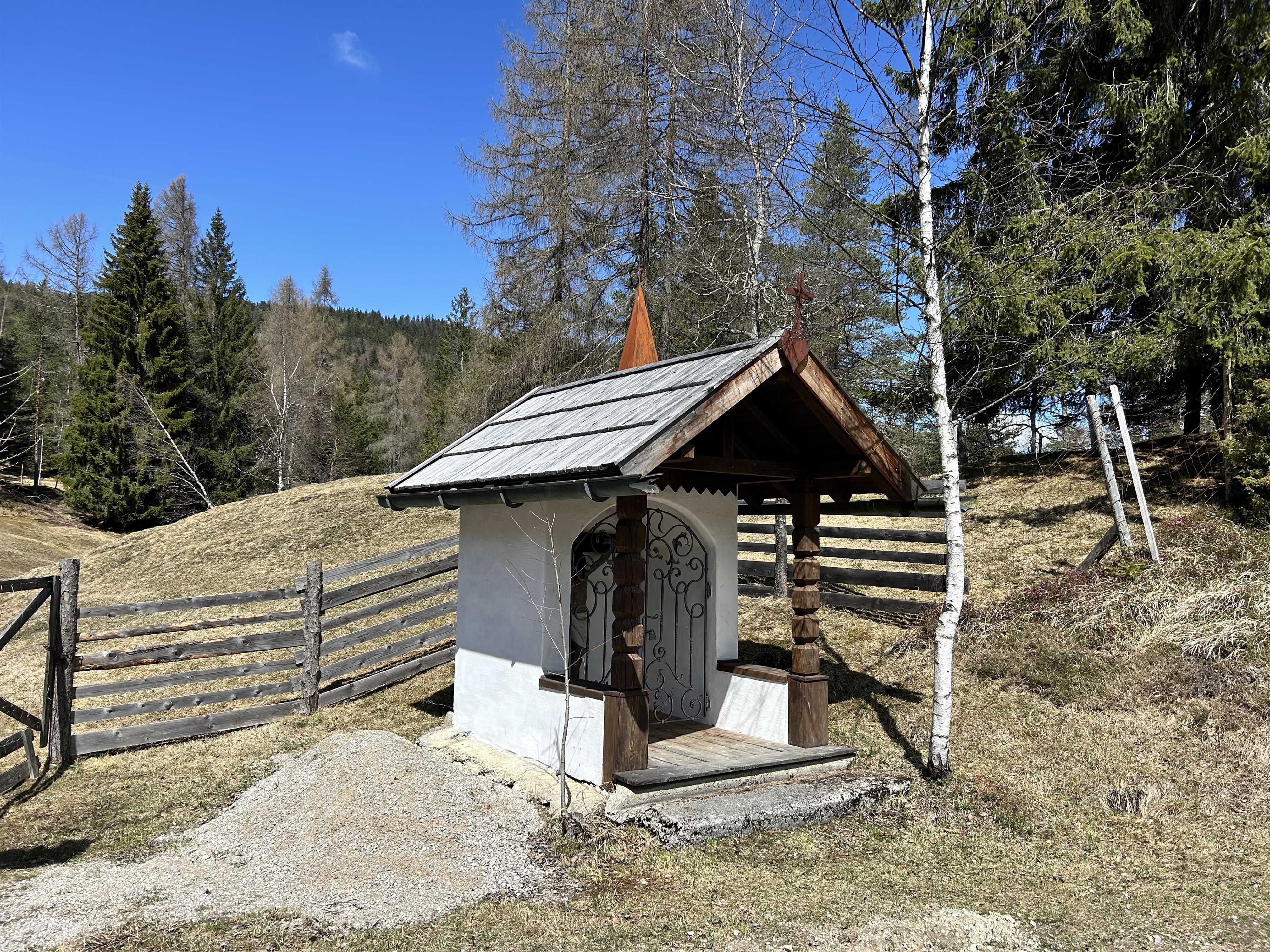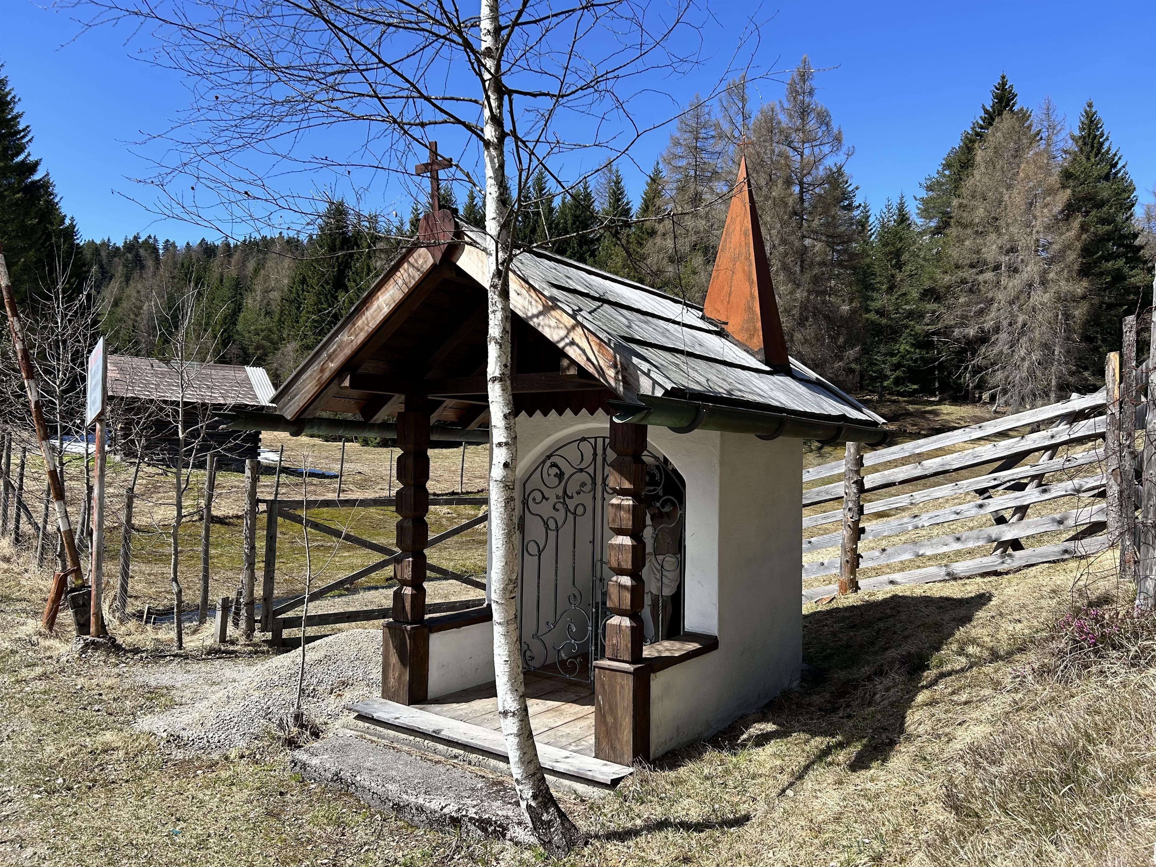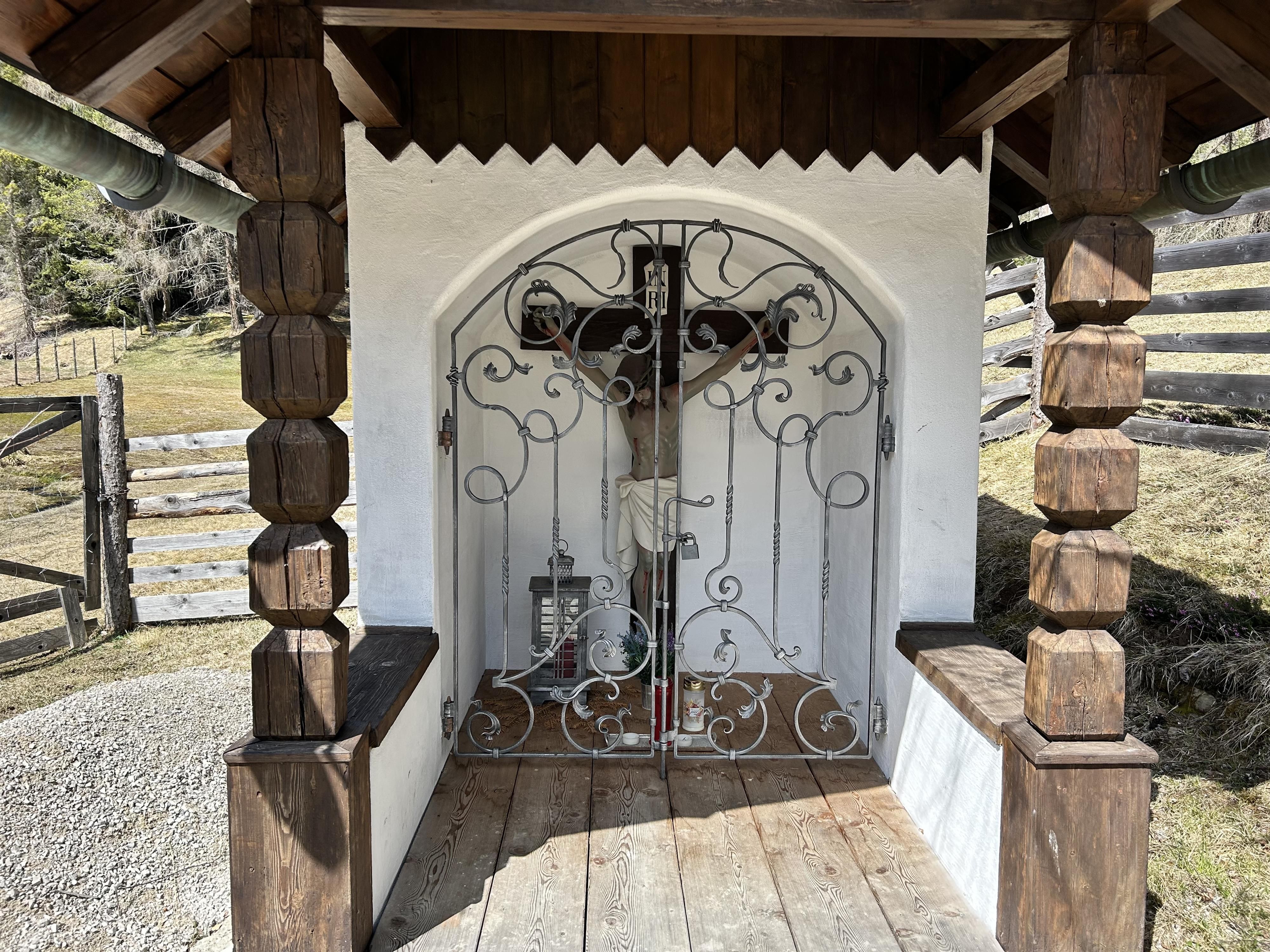 Zwischen Mösern und Seefeld steht eine kleine, stille Wegkapelle. Errichtet im Jahr 1905 von dem Möserer Nikolaus Spiegel, erinnert die Kapelle an seinen Sohn, der an genau dieser Stelle tödlich verunglückte. Zwei Inschriftentafeln im Inneren halten dieses Schicksal bis heute fest und machen den Ort zu einem Platz des Innehaltens. Der gemauerte Bau besticht durch sein charakteristisches, vorgezogenes Satteldach, das von schlichten Holzsäulen getragen wird. In der segmentbogig geschlossenen Nische befindet sich eine eindrucksvolle Christusfigur aus dem 19. Jahrhundert, die dem kleinen Bauwerk eine besondere Präsenz verleiht. Über die Jahre hinweg wurde die Kapelle von verschiedenen Möserer Familien betreut und gepflegt. Im Jahr 2025 erfuhr sie eine behutsame Renovierung, wodurch sie auch heute wieder in neuem Glanz erscheint. Der Name „Marte“, der im Zusammenhang mit der Kapelle auftaucht, geht übrigens auf den alten Hofnamen der heutigen Pension Spiegel zurück, auch wenn sich die Besitzverhältnisse seit der Errichtung mehrfach geändert haben.