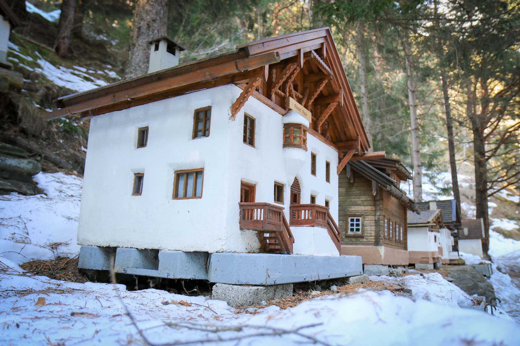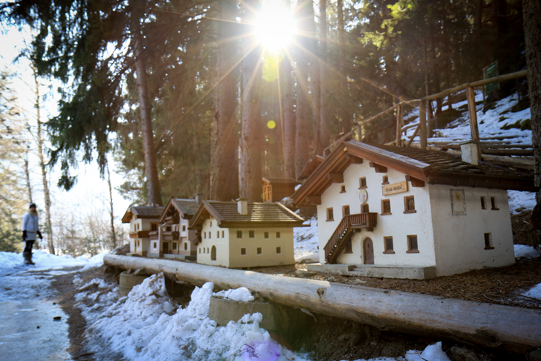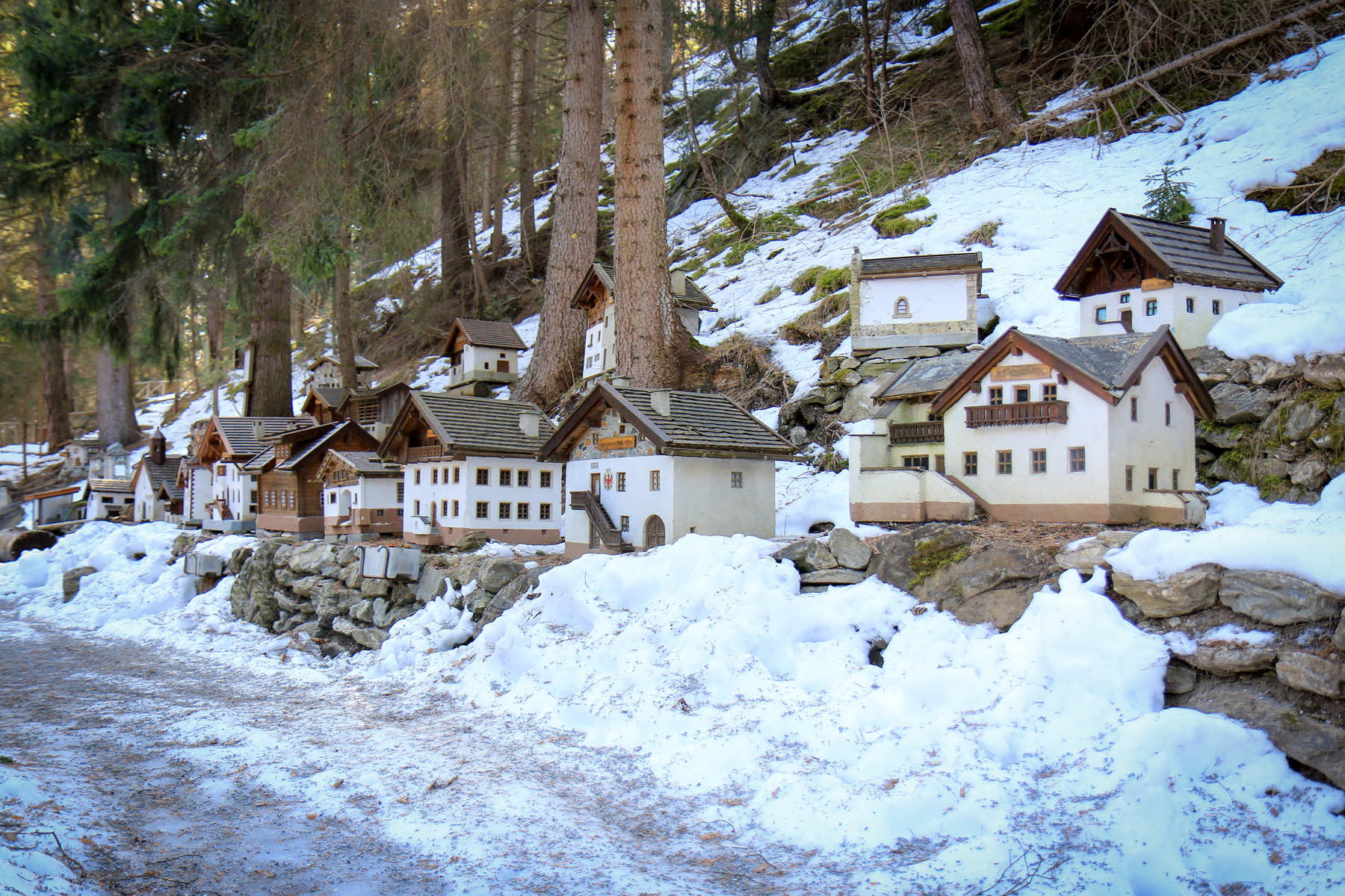Direkt an der Via Claudia Augusta wurden in liebevoller Arbeit, einige Bauwerke aus Pfunds im Kleinformat nachgebaut. So ist ein wahres Mini-Dorf entstanden. Die Wassertretanlage wurde direkt nach dem Mini-Fundus (in Richtung Kajetansbrücke) angelegt. Fuß- & Armbecken bieten eine wunderbare Erfrischung für müde Wanderbeine.