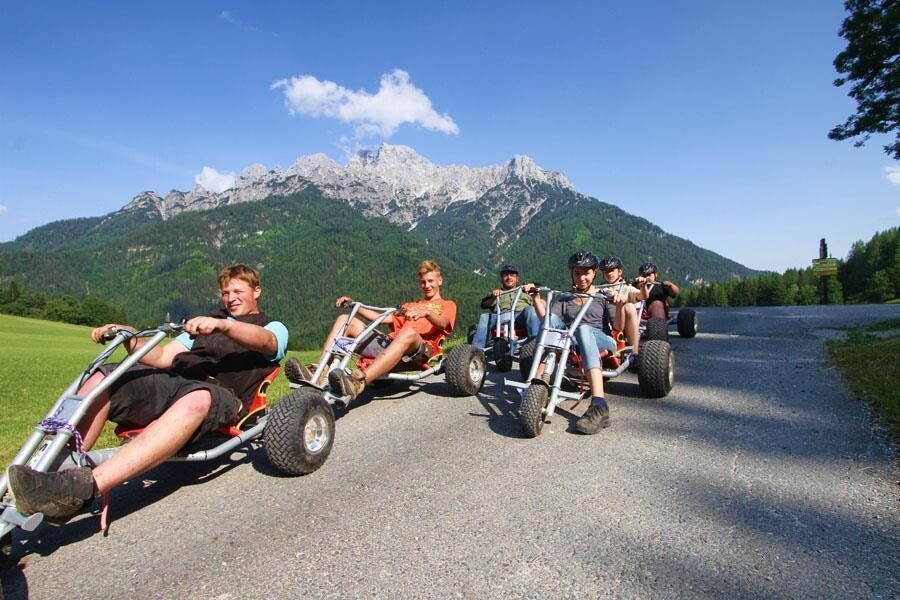 Spaß und Rodelvergnügen bieten die Fun-Sportgeräte beim Alpengasthof Oberweißbach in Waidring! Die vordefinierte "Sommerrodelbahn" ist rund 2,1 km lang und 3 m breit. Mountaincarts in verschiedenen Größen stehen zur Verfügung - ein Spaß für die ganze Familie!