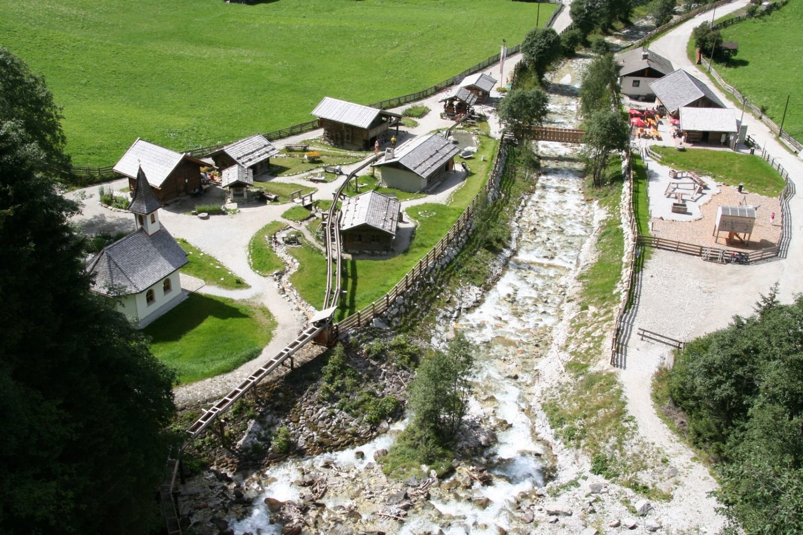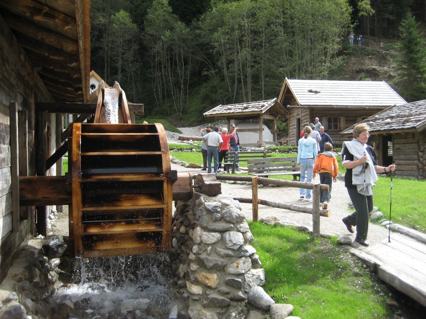 Bestaunt werden kann die durch Wasserkraft angetriebene Getreidemühle sowie die Schmiede und die Handwerkstätte. Man kann miterleben, wie das eigenhändig geerntete Getreide zu Mehl gemahlen wurde. Der Sandeswasserfall im Hintergrund bietet ein imposantes Naturschauspiel, das man von der Besucherplattform unterhalb oder von einer 40m langen Brücke oberhalb beobachten kann. Für Kinder gibt es viele Spielmöglichkeiten rund ums Thema Wasser.