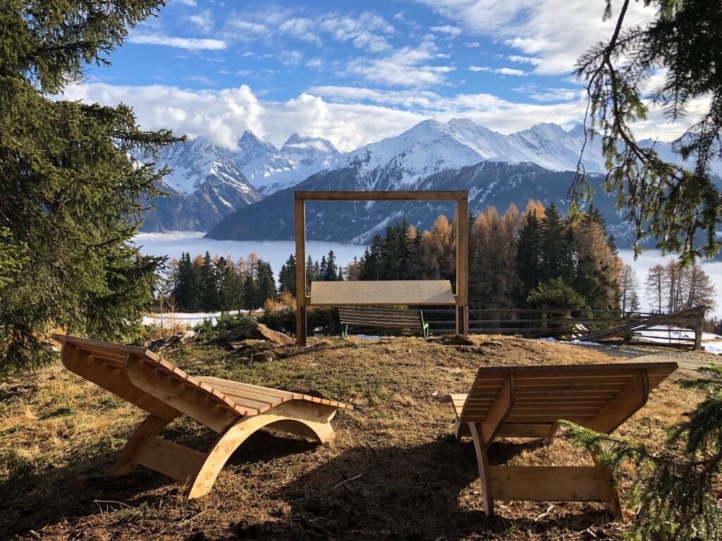 Der Rastplatz "Fotorahmen" befindet sich am Wanderweg zur Aifneralm. Sie starten beim Parkplatz "Schnadiger Weiher" in Kaunerberg und wandern idyllisch durch den Wald in Richtung Aifneralm.