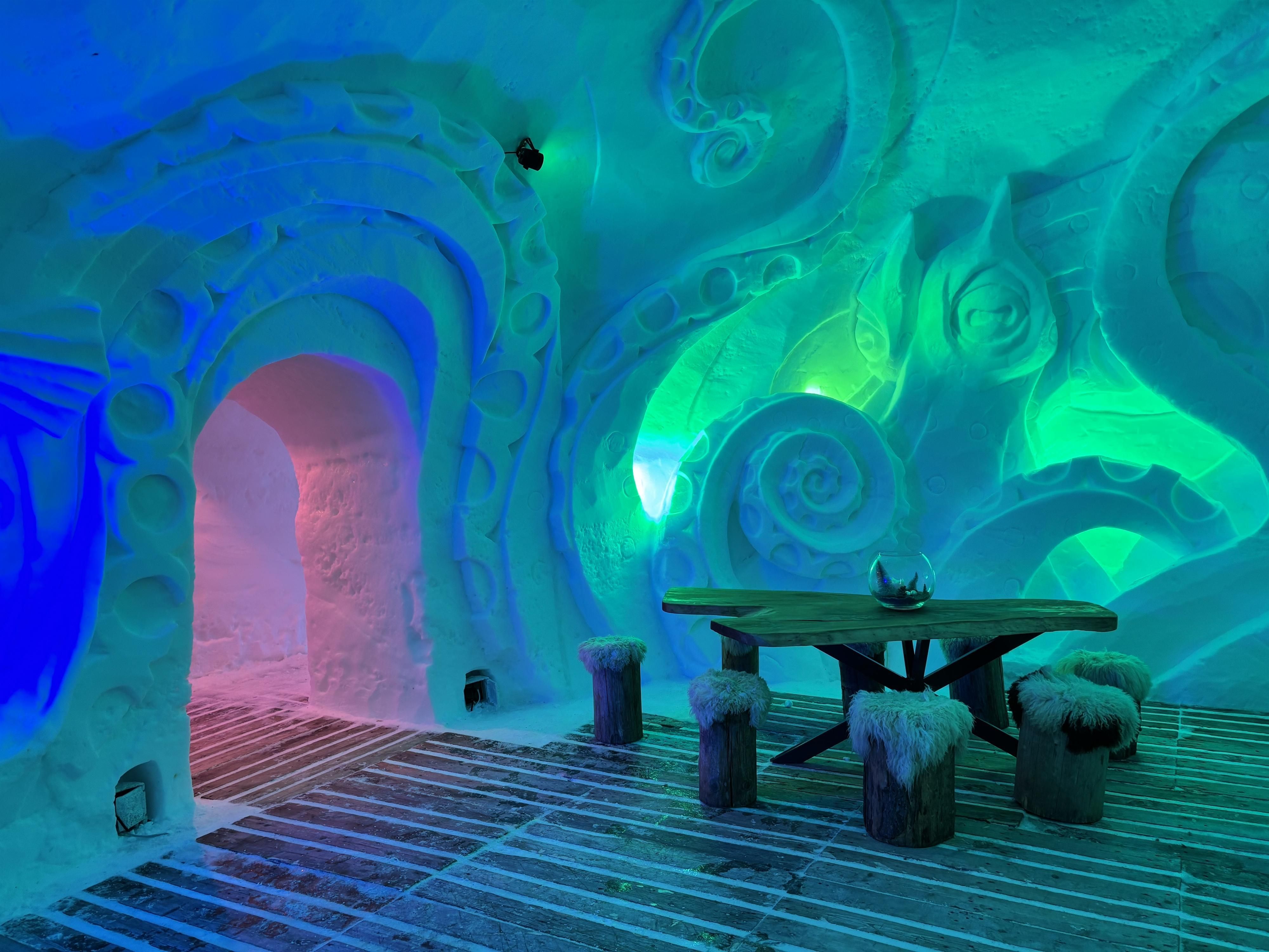 Auch als Tagesbesucher ohne Übernachtung kann das Eisdorf bei einem warmen Getränk bestaunt werden.