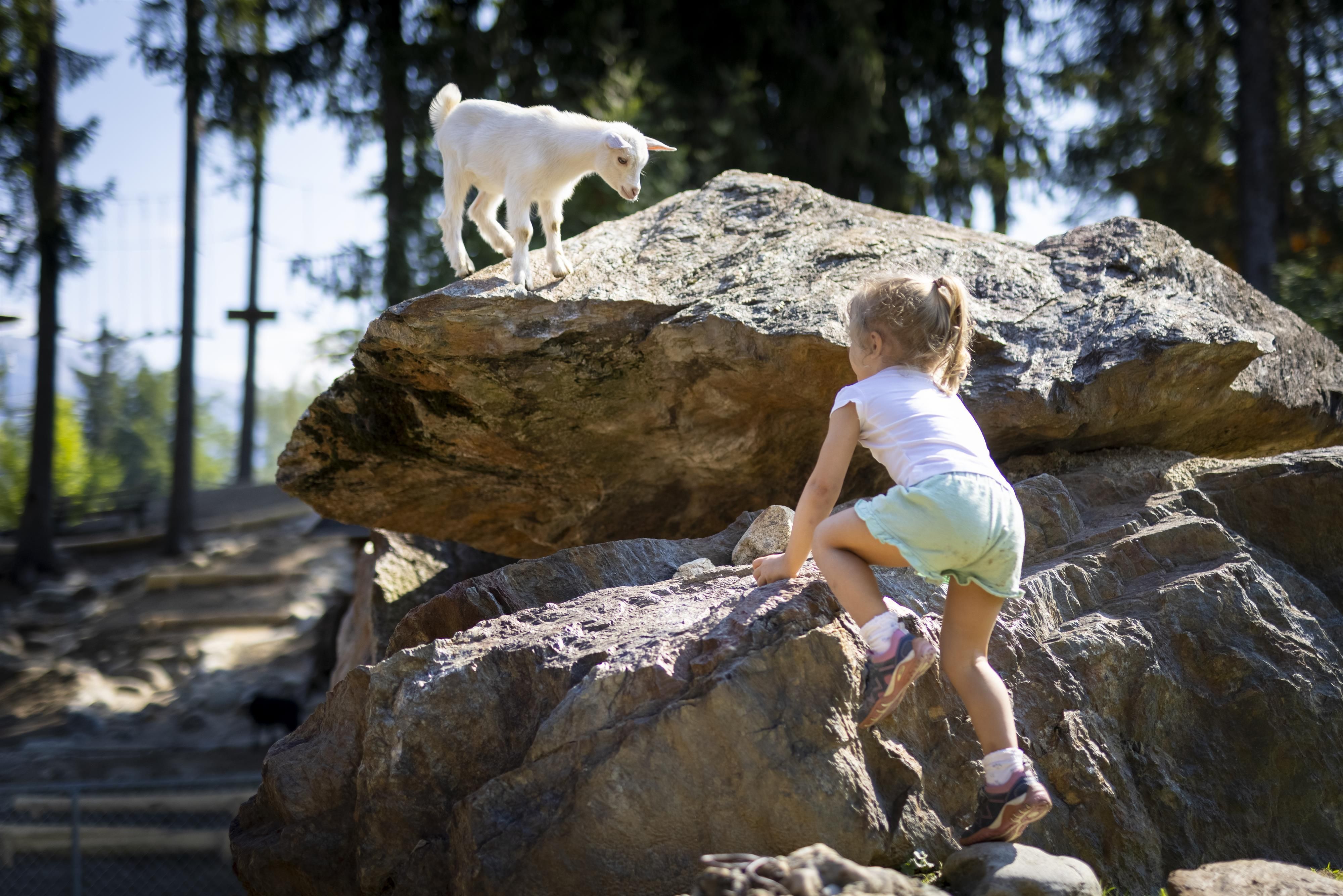 Die Kinderwelt am Hochstein!Streichelzoo und Waldkinderspielplatz beim Berggasthaus "Moos-Alm" 1006 mMachen Sie Ihre Kinder vertraut mit der Welt der Tiere: Hauskaninchen, Zwergziegen, Lämmchen, Wild- und Hausenten an einem kleinen Teich - Zwerghühner und so manches mehr, lauter Tiere zum Gernhaben.Während Mama und Papa sich im Berggasthaus Moosalm verwöhnen lassen, vergnügen sichdie Kleinen mit den Tieren. Ständig Jungtiere. Zum Angreifen und Streicheln.Kinderabenteuer, die für jedermann leicht zu erreichen sind. Erreichbar zu Fuß von Lienz, auf gut angelegten Wanderwegen, Gehzeit: ca. 1 Stunde