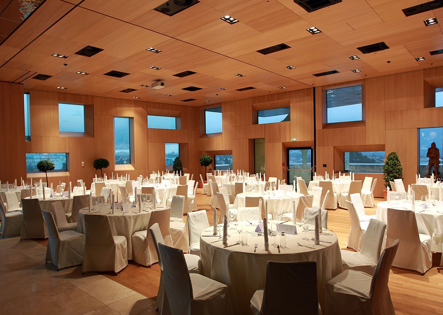 Die mondäne Architektur des Veranstaltungszentrum beeindruckt durch eine offene Gestaltung und bietet für Wirtschaft und Kultur neue Perspektiven. Die Eventlocation punktet vor allem durch ihr flexibles Raumkonzept. Die Räume können durch Trennwände variabel gestaltet und an den Wunsch des Veranstalters angepasst werden.