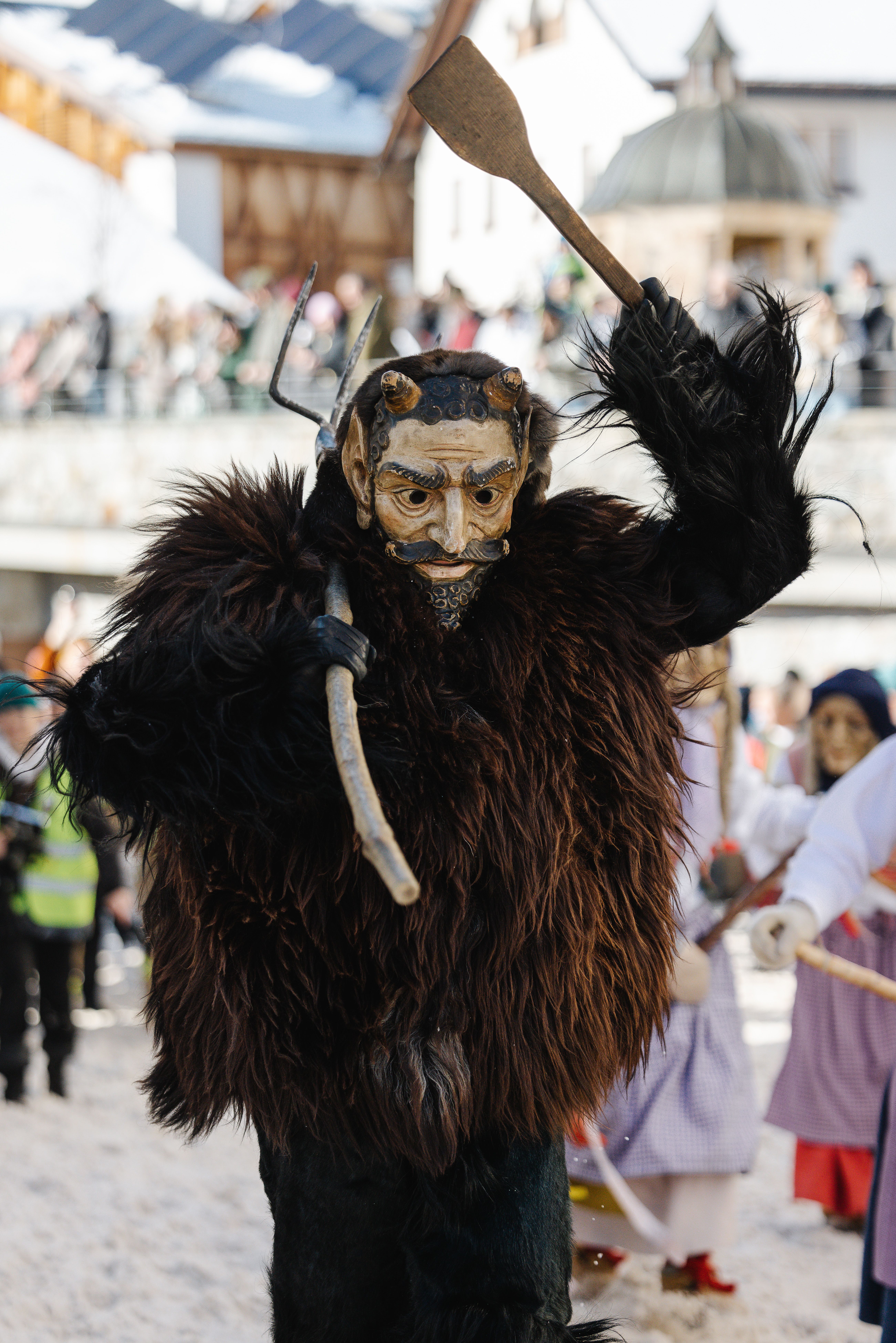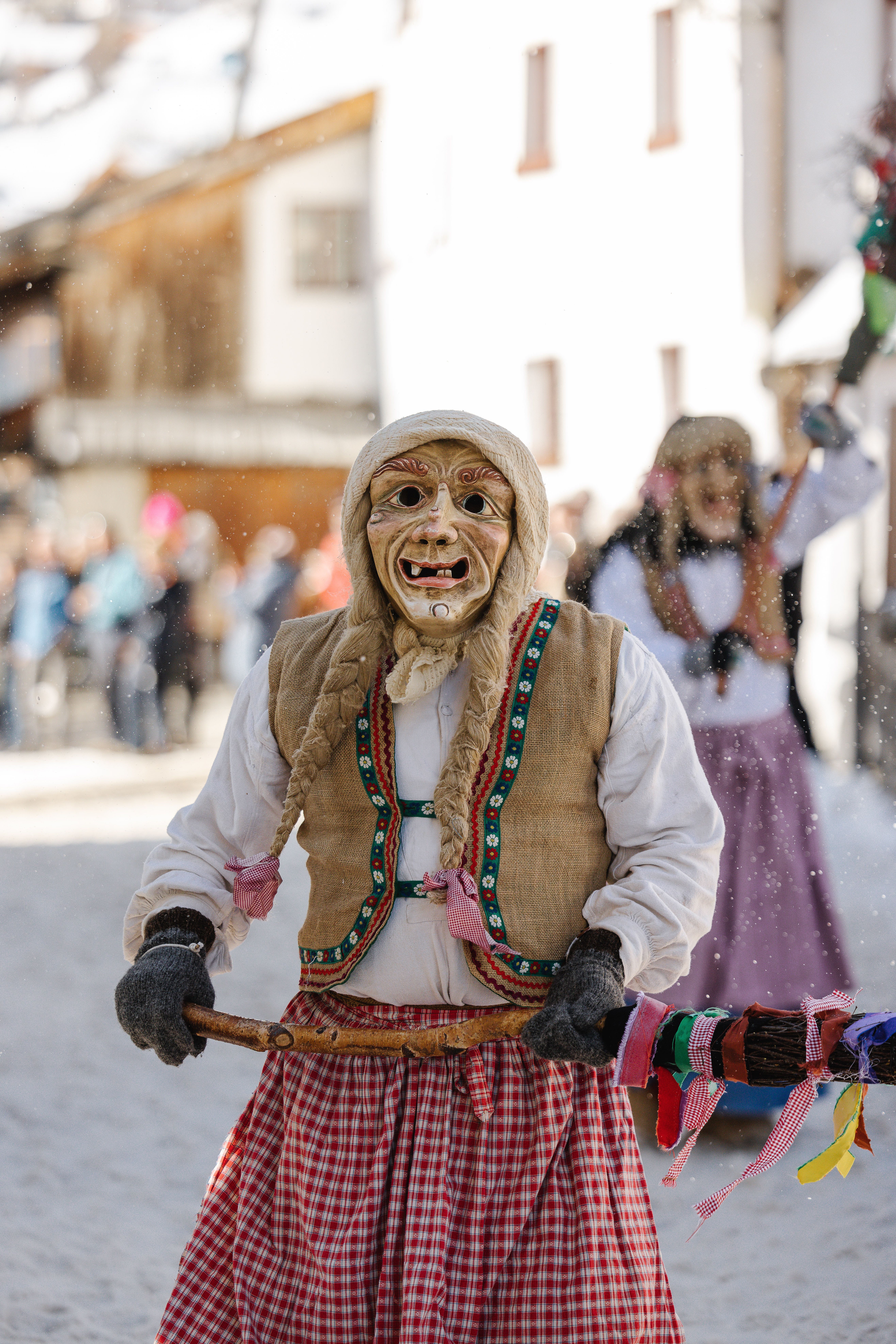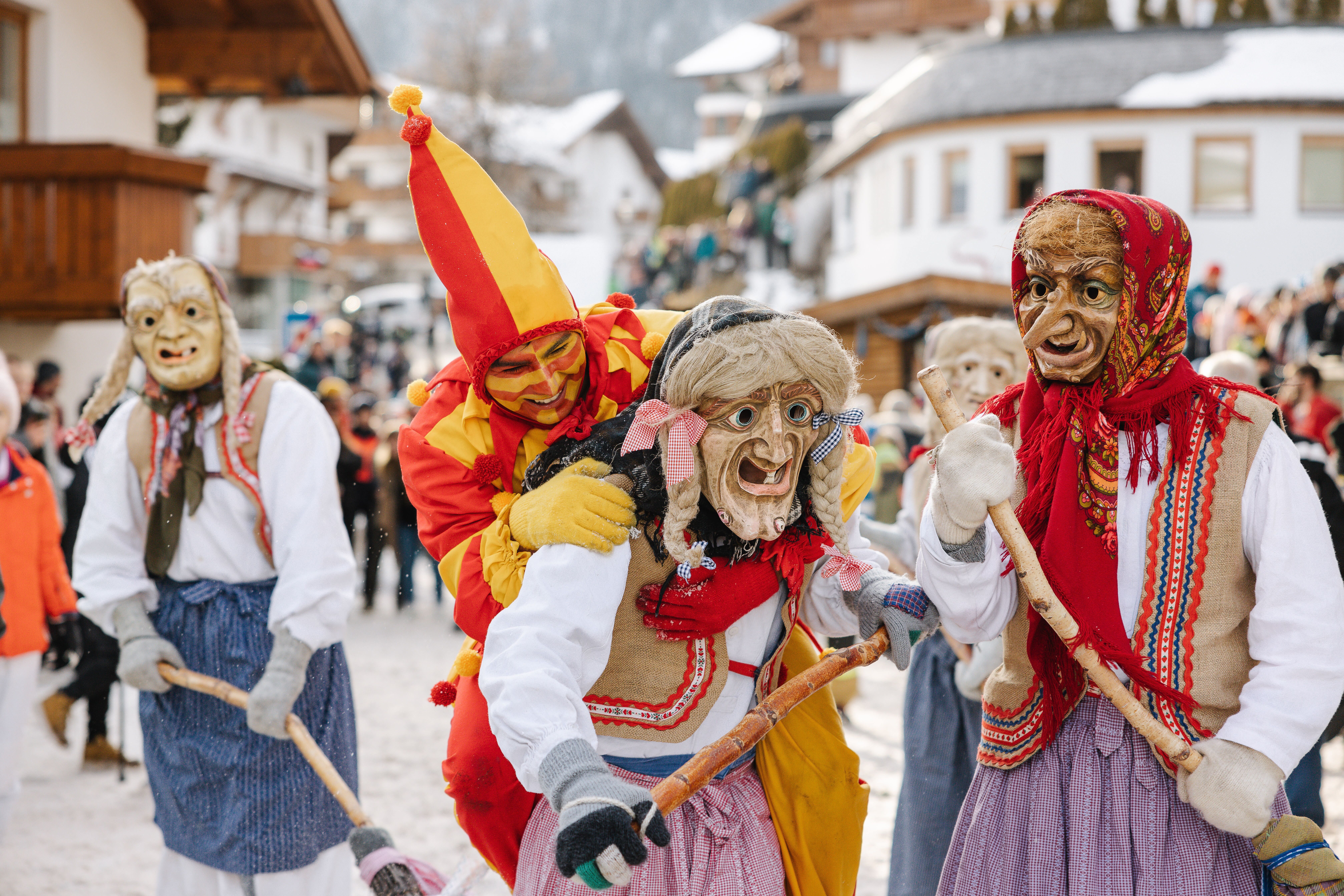 Hinter den kunstvoll geschnitzten Larven – wie die Holzmasken bei uns heißen – verbergen sich Rollen, die seit Generationen überliefert sind. Es ist ein Spiel zwischen den Jahreszeiten, bei dem es schon mal etwas rauer zugehen kann.