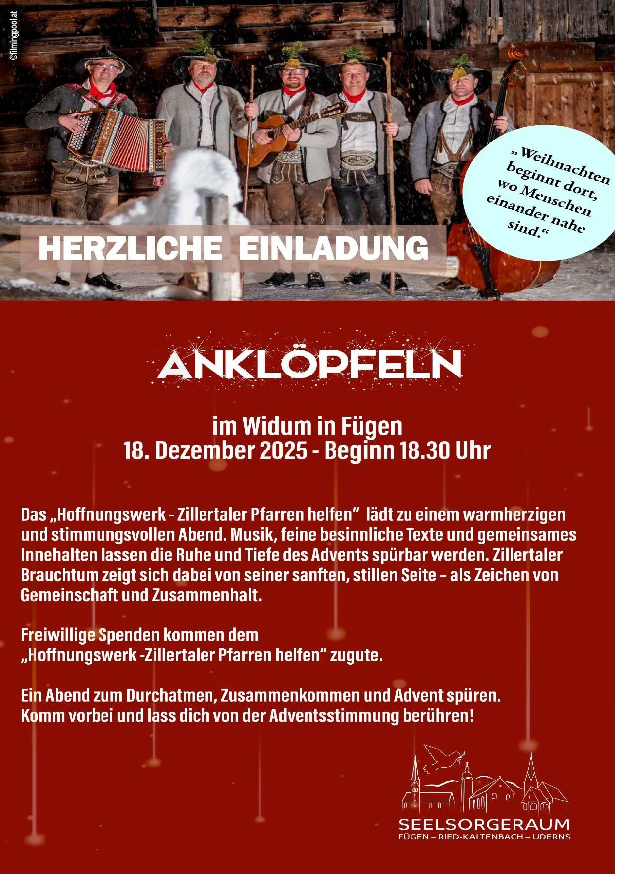 Feine Musik, besinnliche Texte und gemeinsames Innehalten machen die Ruhe und Tiefe des Advents spürbar, während sich Zillertaler Brauchtum von seiner stillen Seite zeigt. Freiwillige Spenden unterstützen das Hoffnungswerk – Zillertaler Pfarren helfen.