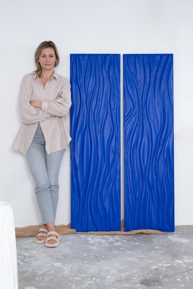 Im Mittelpunkt steht die Objektserie „BeHappy“ aus farbintensiven, weichen Materialien und markanten Formen, die Optimismus und emotionale Offenheit betont – ein künstlerisches Statement für Freude, Hoffnung und Zuversicht in unsicheren Zeiten. Ergänzt wird die Schau durch ausgewählte aktuelle Malereien, die Material, Tiefe und Intuition weiter erforschen; die Monochrome wird zum Raum, zur Haut, zur Emotion.