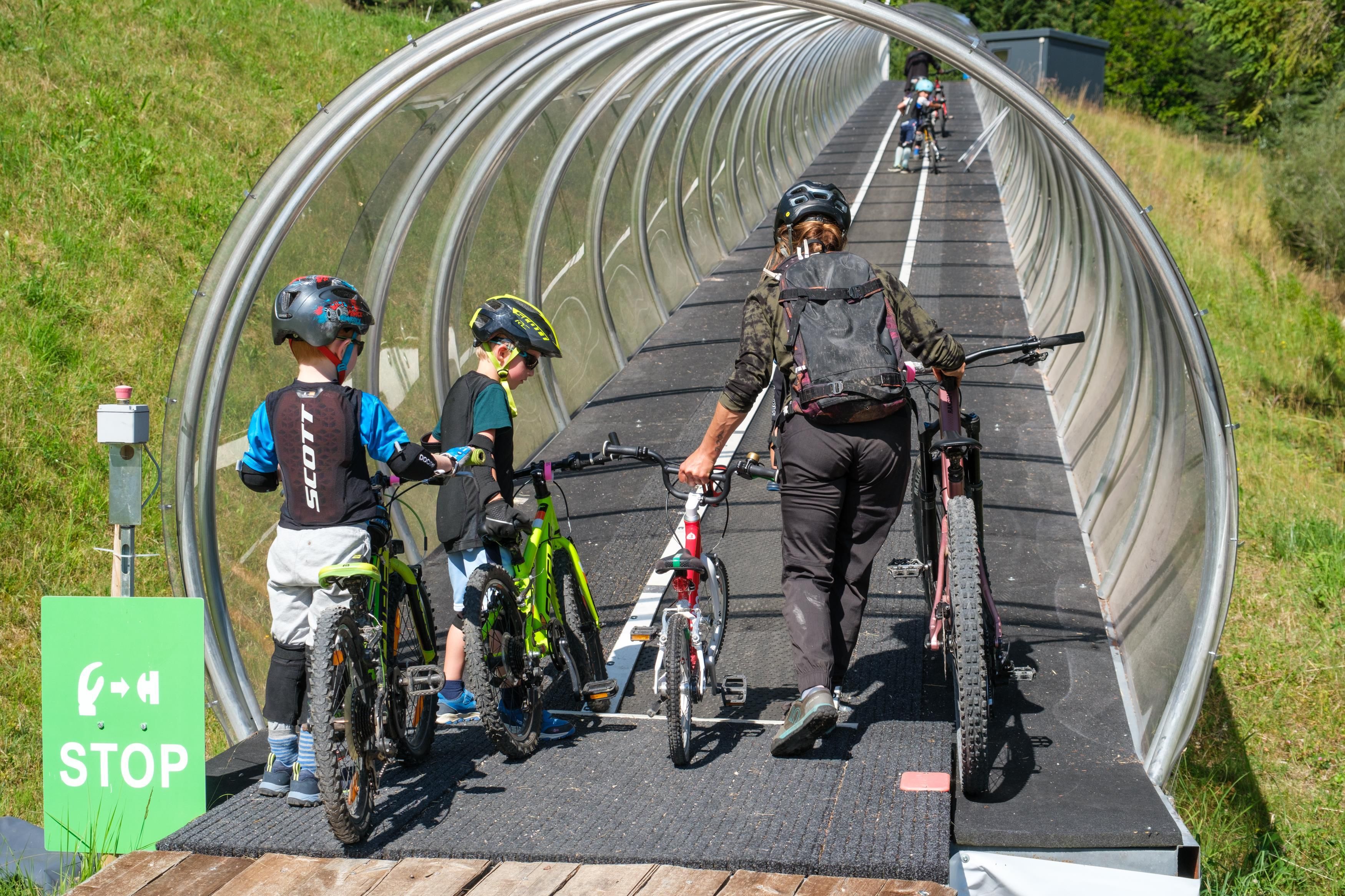 Die Eltern müssen untertags nicht in der Nähe bleiben, können aber natürlich auch gerne ein paar Runden im Bikepark drehen, oder gemütlich auf den Katzenkopf wandern.