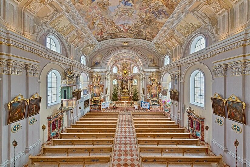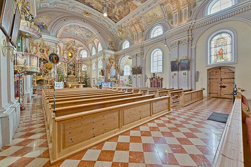 Die zweitgrößte Landkirche Tirols, ist mit ihren prächtigen Fresken und ihrem Stuck ein Schmuckstück.