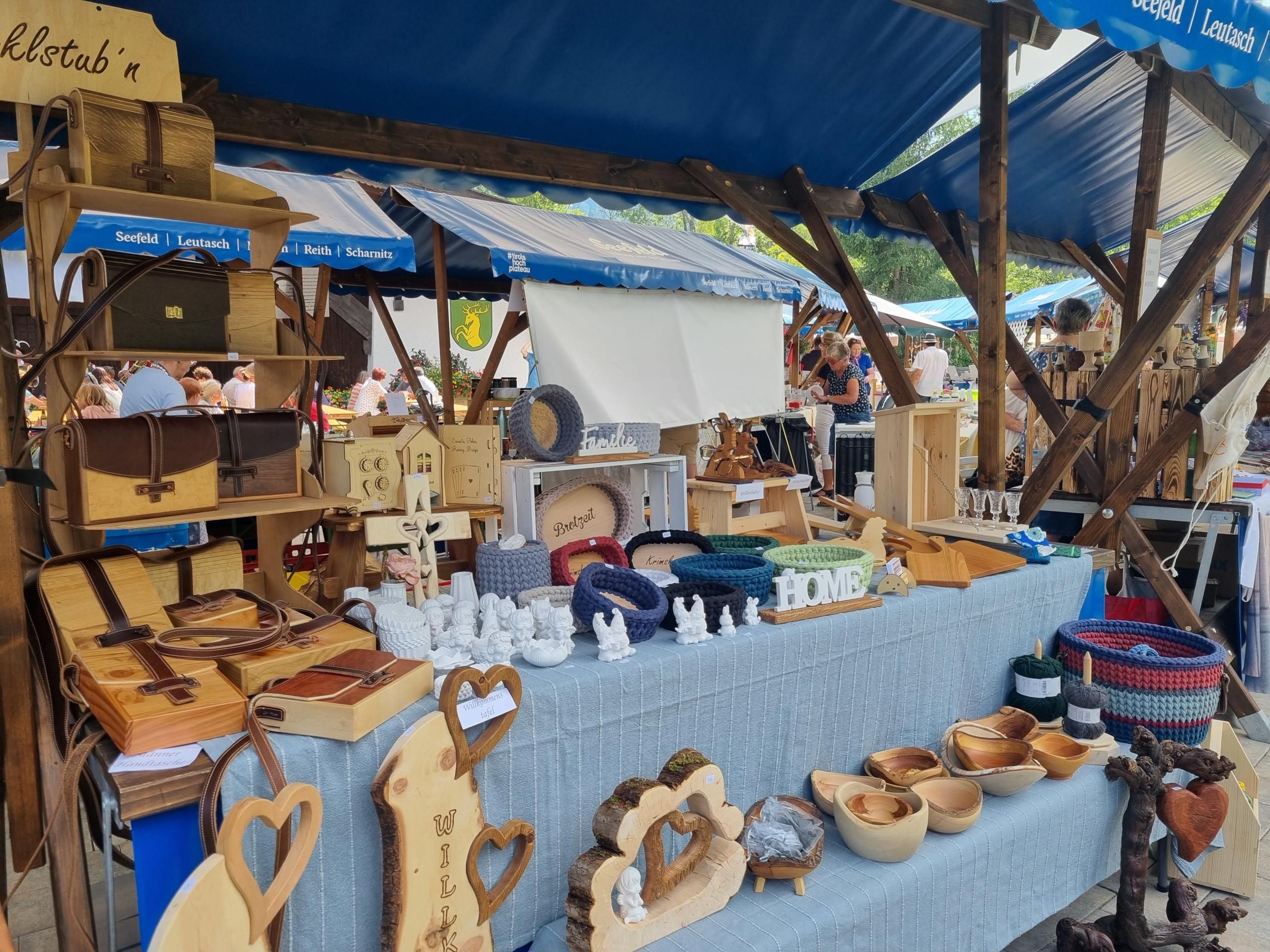 Auf dem Leutascher Sommermarkt'l gibt es so viele Marktstände zu entdecken, an denen talentierte Handwerker ihre selbstgebastelten und selbstgenähten Schätze präsentieren.