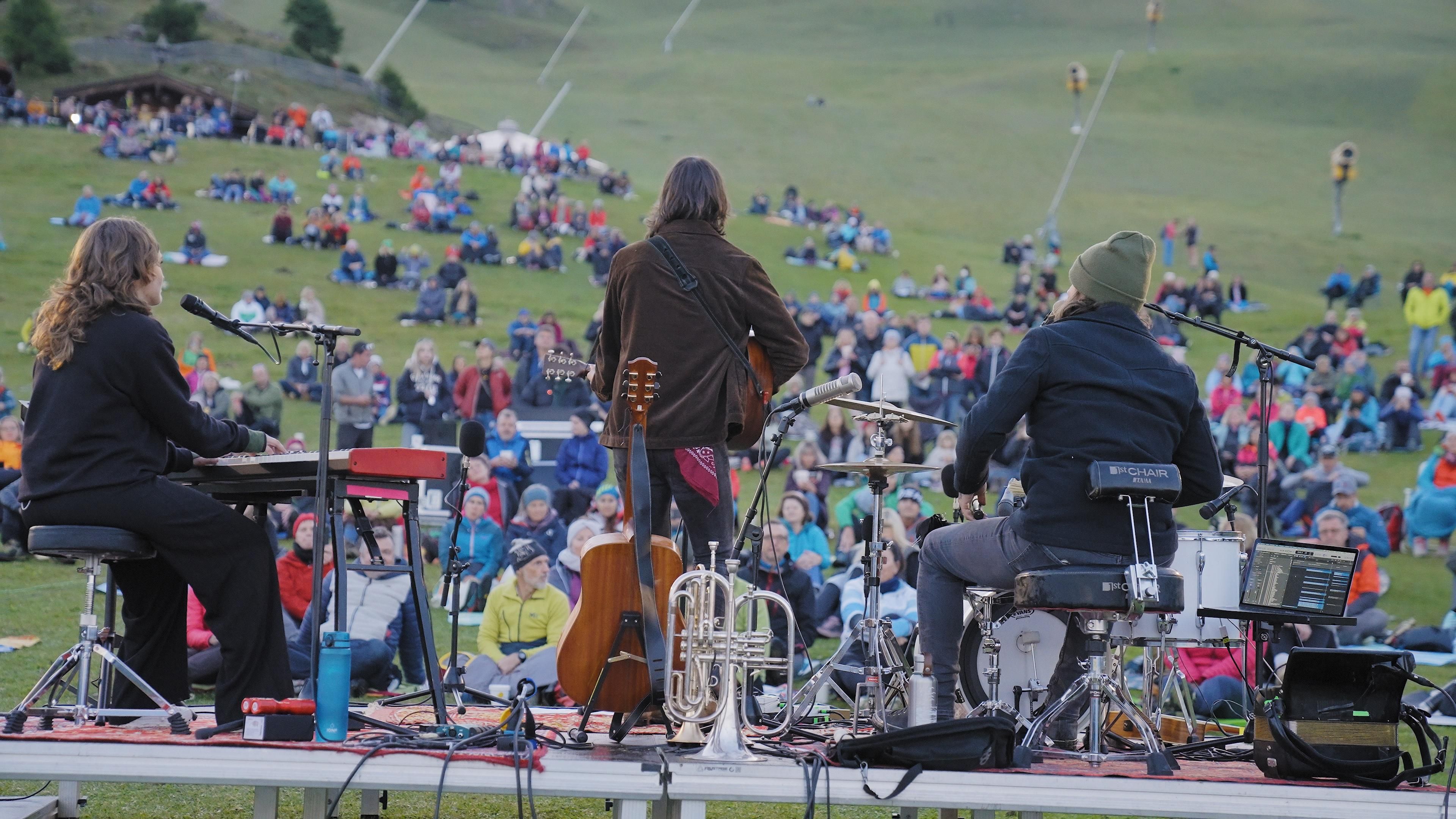 Die Bergbahn bringt dich im Morgengrauen auf die Rosshütte, wo ein zehnminütiger, einfacher Spaziergang zur Konzertlocation inmitten der langsam erwachenden Natur führt. Hier, umgeben von der beeindruckenden Alpenlandschaft, starten wir gemeinsam in den Tag – begleitet von den emotionalen Klängen von Max von Milland und seiner Band „Die Brennenden Herzen“.