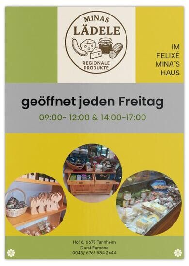 jeden Freitag 9 bis 12 und 14 bis 17 Uhr geöffnet! Verkauf von regionalen Produkten!