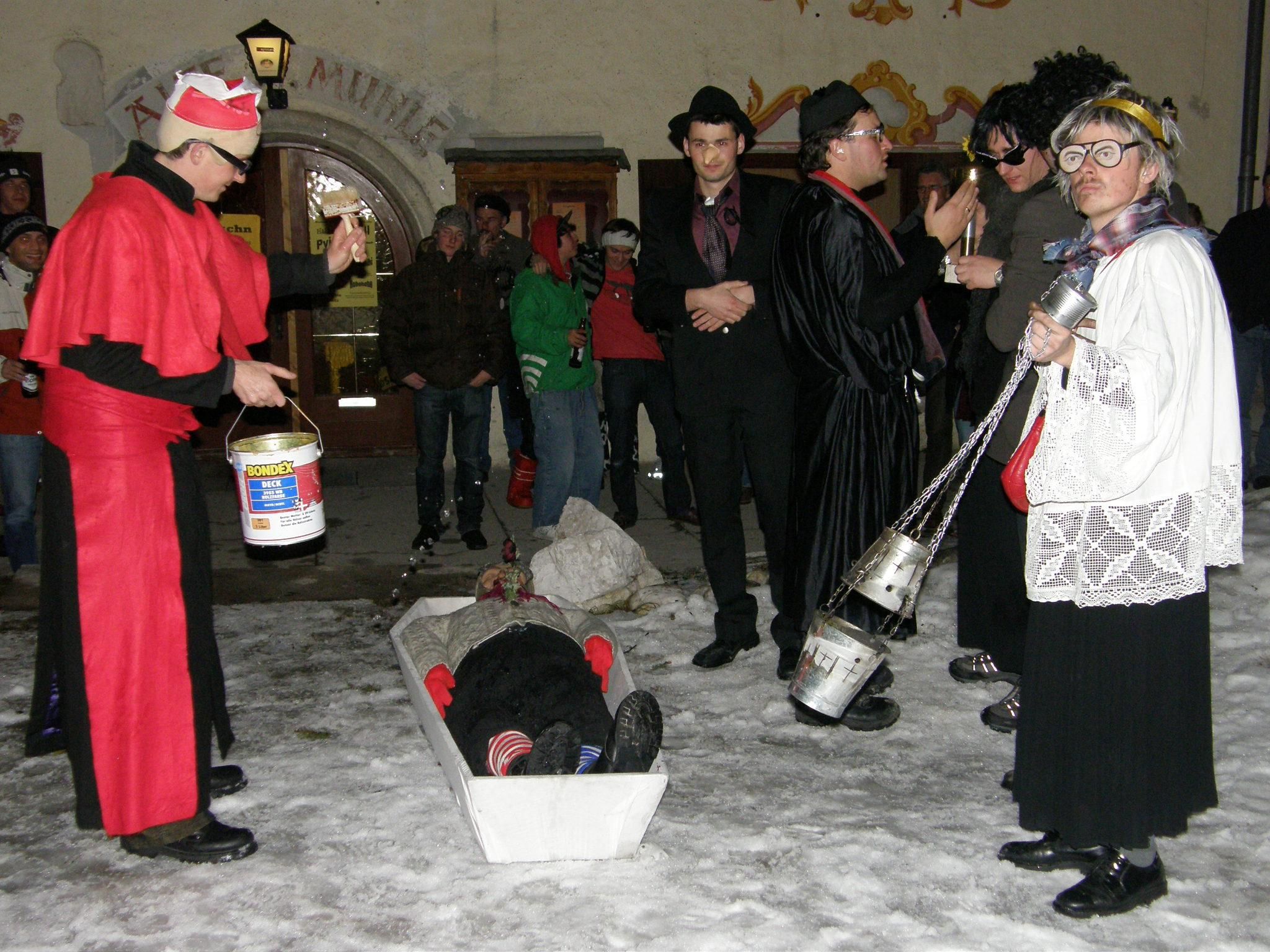 Außerdem wird der "Naz" - der den Fasching in persona symbolisiert in einer besonderen Abschlussfeier wieder eingegraben und somit ist der Fasching beendet.