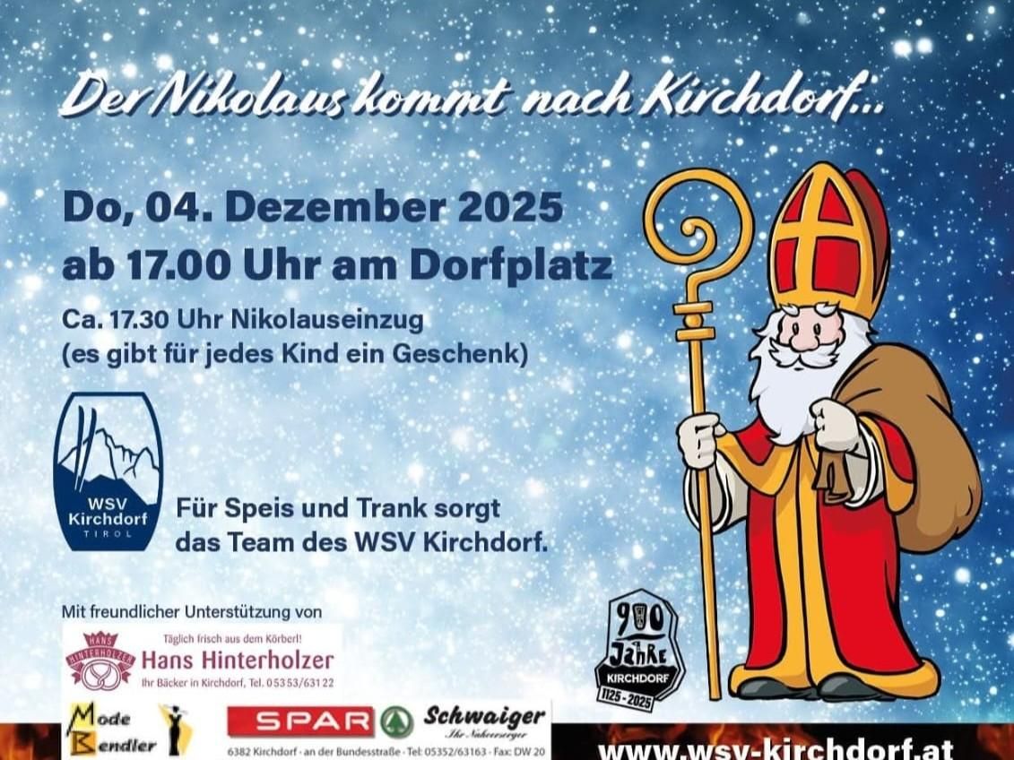 Der Nikolaus kommt am 4. Dezember nach Kirchdorf. Ab 17.00 Uhr gehts am Dorfplatz los, der Nikolaus zieht um 17.30 ein.