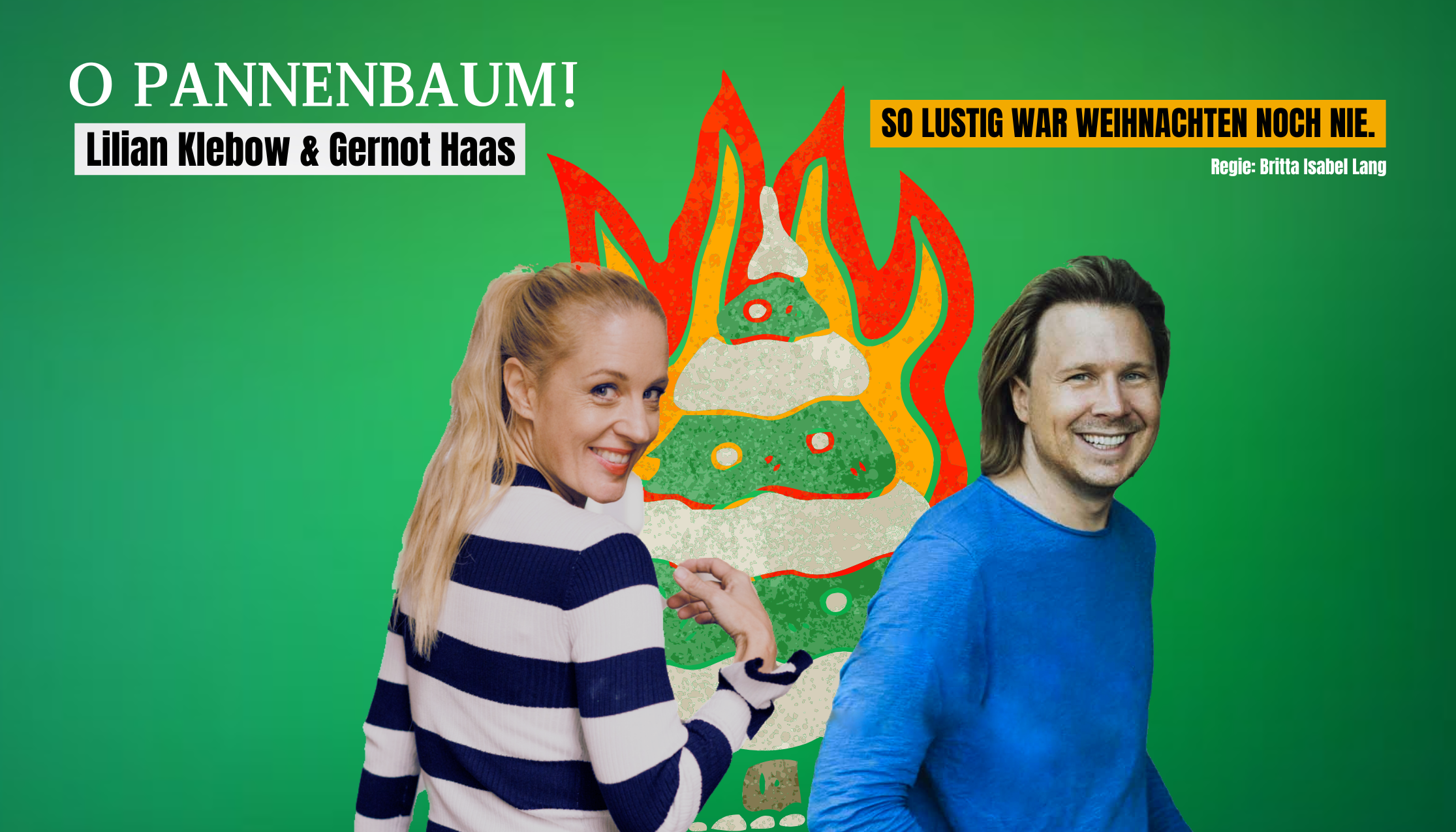 O Pannenbaum! – So lustig war Weihnachten noch nie. "Soko-Donau"-Star Lilian Klebow und Meisterparodist Gernot Haas präsentieren ein weihnachtliches Pointen-Feuerwerk. Sie begeistern mit herrlich komischen Szenen, lustigen Liedern und humorvollen Texten über das Fest der Feste. Sie erzählen vom spätsommerlichen Weihnachtswettrüsten der Supermarktketten, von der Suche nach dem richtigen Geschenk, von schlichten Fichten und geköpften Tannen, von rätselhaften Antwortbriefen vom Christkind und vielem mehr. Spontane Improvisationen machen jeden Abend zu einem einmaligen Erlebnis.