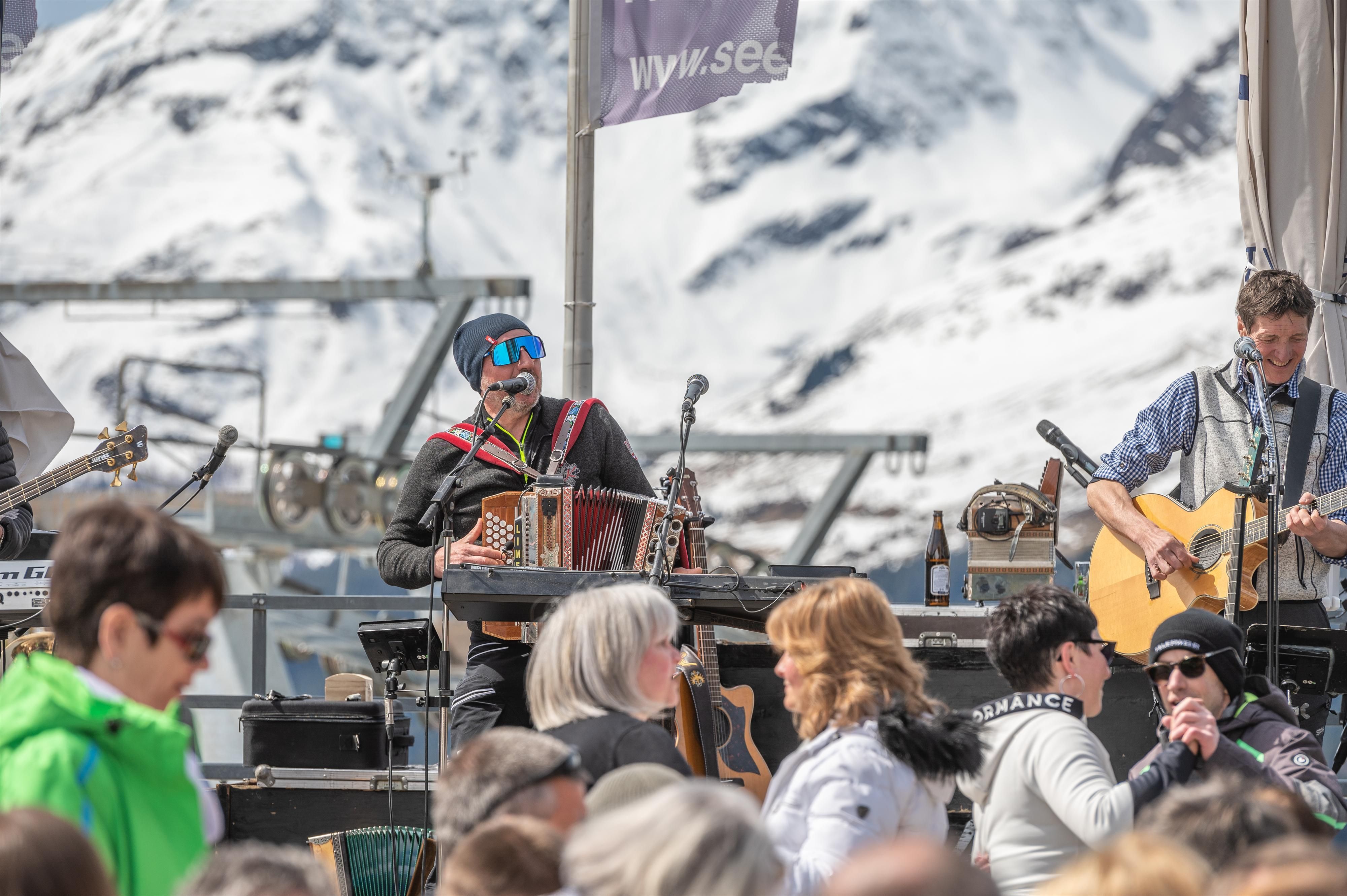 Am Ostermontag lassen wir es richtig krachen, die bekannte Tiroler Band "PFUNDS-KERLE" heizt den Gästen auf der Sonnenterrasse beim Panoramarestaurant ordentlich ein. Da wird die Eisbar zum Mittelpunkt des Geschehens und das Saisonfinale eingeläutet.