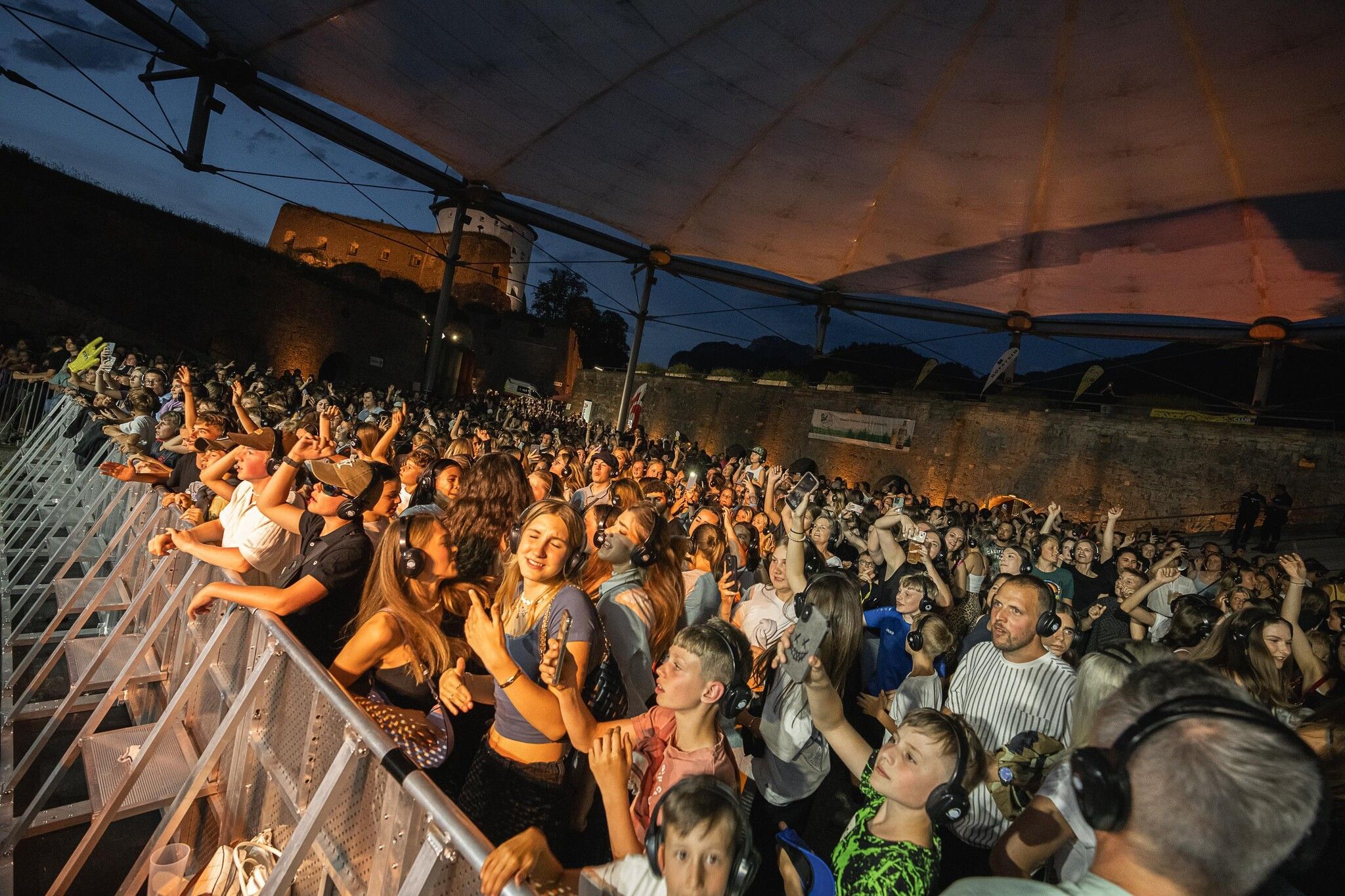 Direkt im Anschluss an bac und Sandra Hesch sorgt die Silent Disco für noch mehr Party-Stimmung. Mit kabellosen Kopfhörern und zwei DJs, die auf unterschiedlichen Kanälen House, Elektro, Charts und Oldies spielen, wird die Festungsarena zur einzigartigen Outdoor-Tanzfläche.