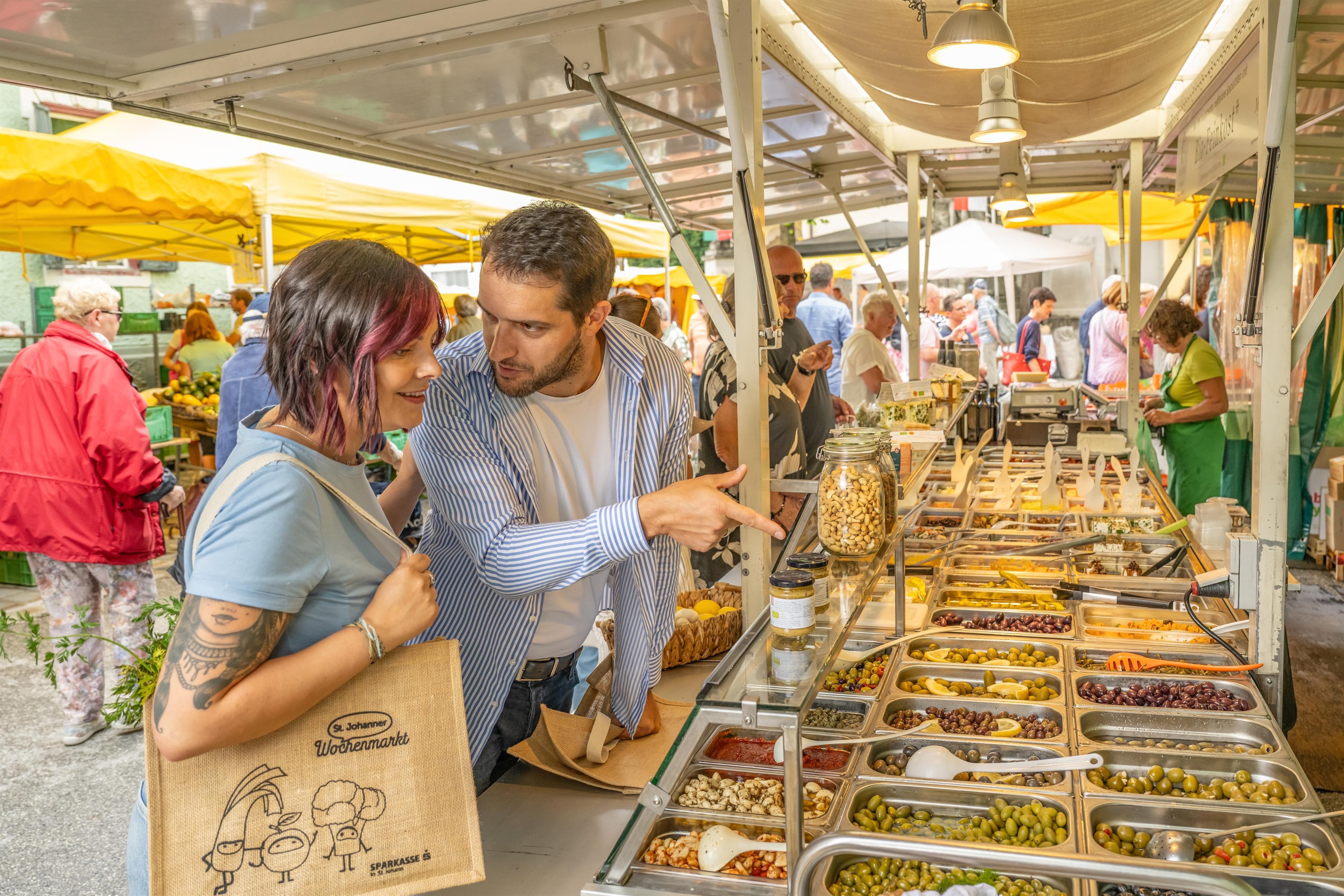 Jeden Freitag * verwandelt sich der St. Johanner Hauptplatz in einen Tummelplatz für gesellige Menschen: St. Johanner Wochenmarkt