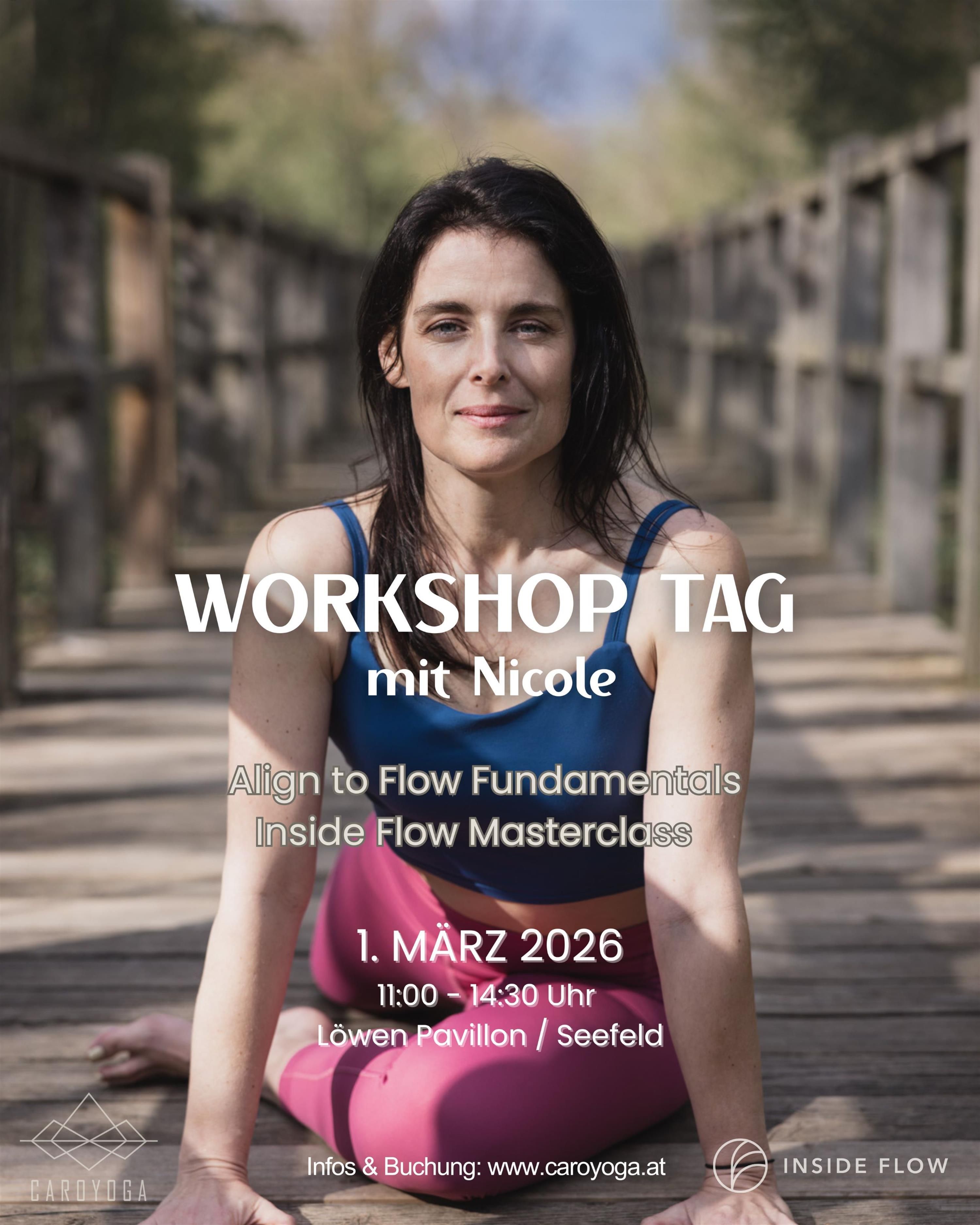 Align to Flow Fundamentals & Inside Flow Masterclass - zwei besondere Yoga-Einheiten an einem Tag! Ein Tag voller Inspiration - für alle, die Yoga neu erleben möchten. Preis: € 89,00. Buchung: www.caroyoga.at/service-page/workshop-tag-mit-nicole, Information: www.caroyoga.at/insideflow-breathwork.