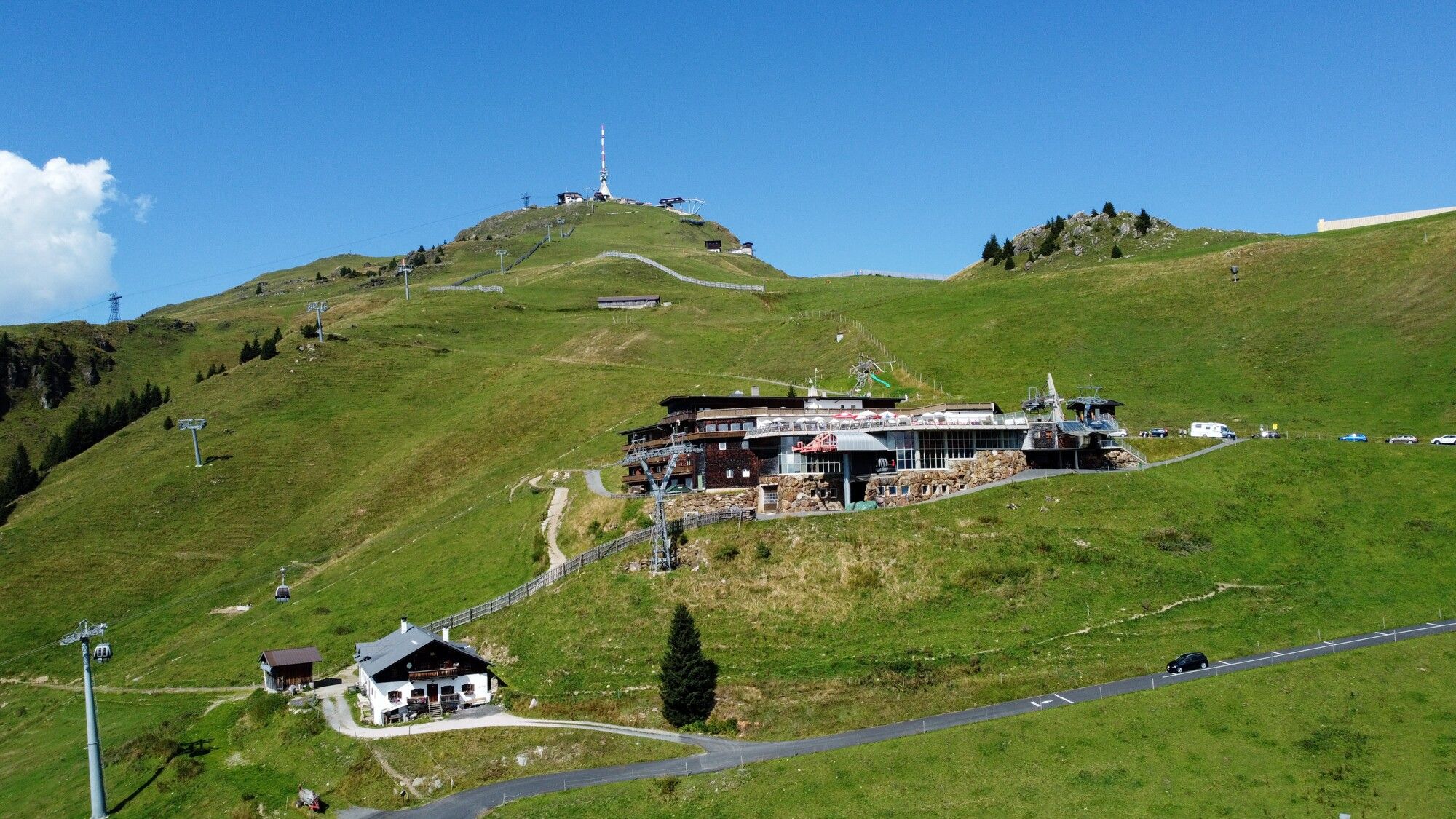 Bei schönem Wetter gibt es die Möglichkeit auf der Sonnenterrasse im Liegestuhl oder auf einer der Terrassenplätze den Ausblick Richtung Großglockner zu genießen. Drei Kachelöfen erwärmen Herz und Seele in den Innenräumen des Bergrestaurants in Kitzbühel.