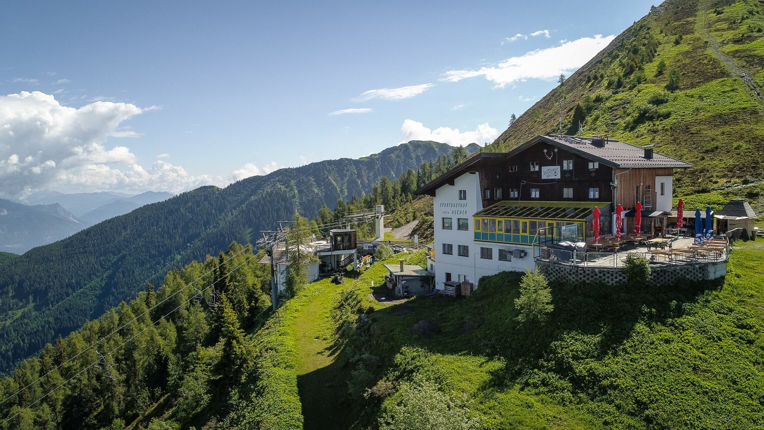 Das Hecherhaus mit seiner großen Sonnenterrasse liegt direkt an der Bergstation der Kellerjochbahn und bietet einen traumhaften Ausblick auf das Inntal und das Karwendel Gebirge.