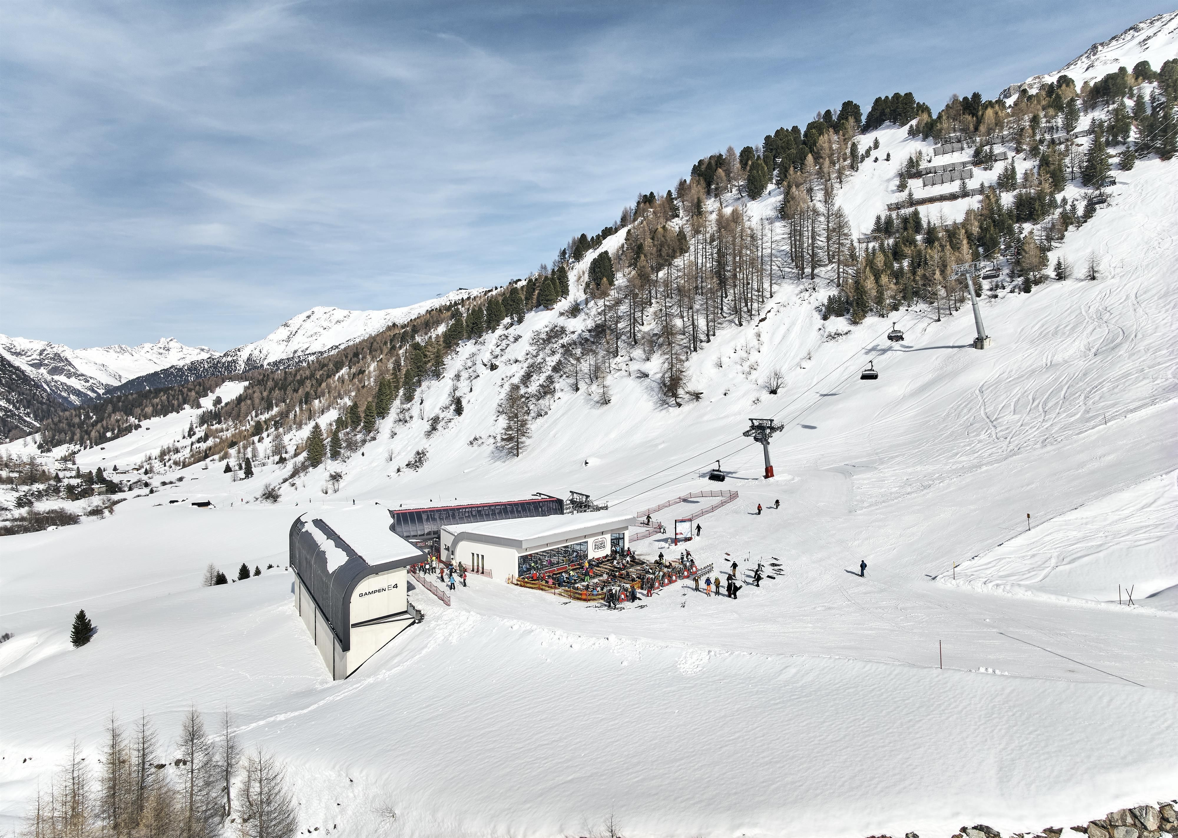 So wird das Essen, etwa ein Gampen-Schnitzel-Burger, aus einer Gondel gereicht, relaxed wird auf der gemütlichen Couch und vieles mehr.