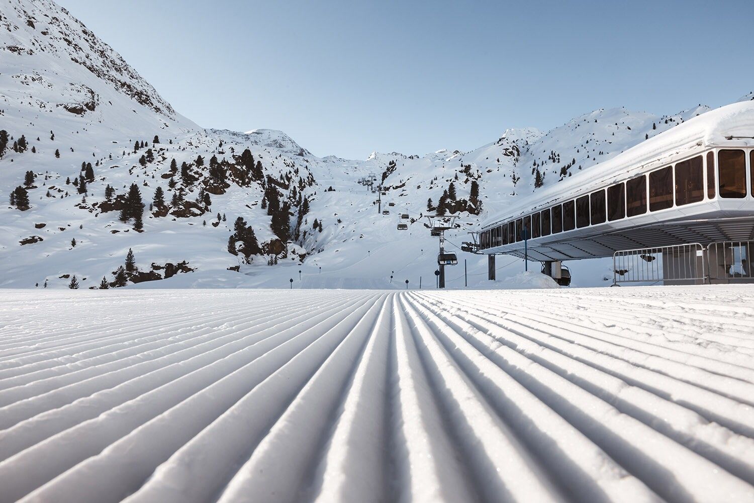 An der Talstation der Ochsenalmbahn am Kaunertaler Gletscher befindet sich das Restaurant Ochsenalm – ideal für bzw. gegen den kleinen Hunger oder für einen guten Cappuccino an der Bar.