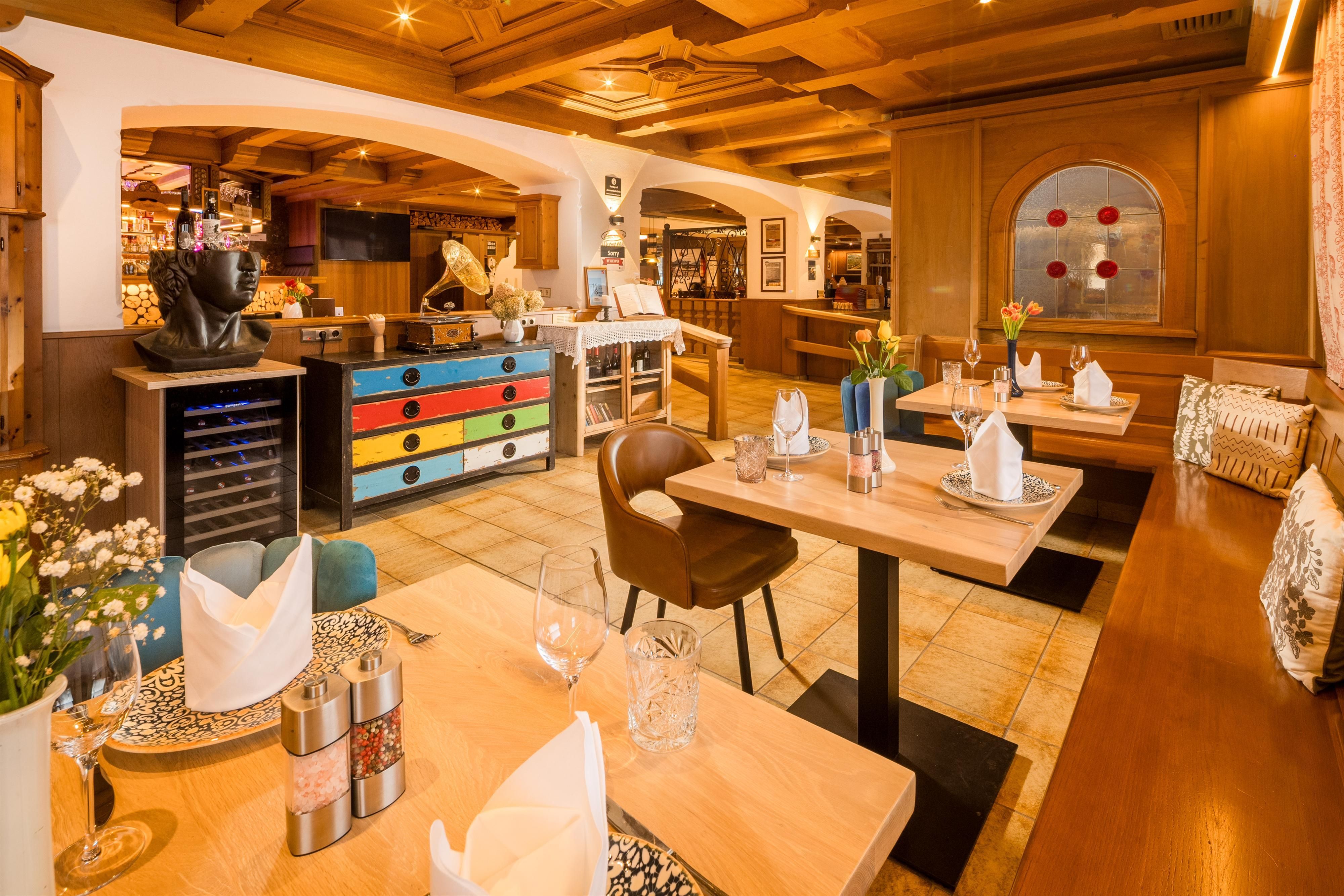 Hier erwarten dich klassische Tiroler Spezialitäten und saisonale Gerichte, frisch zubereitet aus hochwertigen Zutaten aus der Region. Die Kombination aus traditioneller Küche und modernem Anspruch sorgt für ein rundum stimmiges Genusserlebnis.
