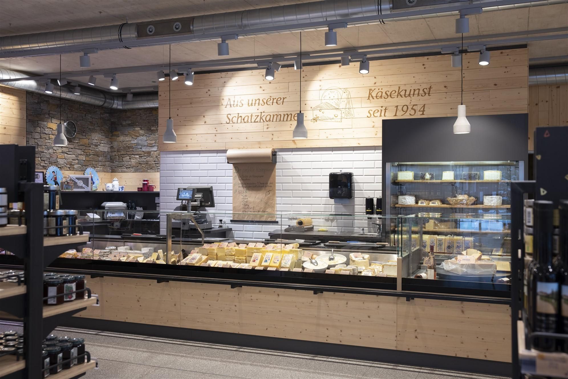 Im Feinkostladen der Familie Kruselburger in Scharnitz findet man alles, was es für eine deftige Tiroler Brettljause braucht: Tiroler Speck, Kaminwurzen, Wildwürste und Bio-Käse von regionalen Sennereien.