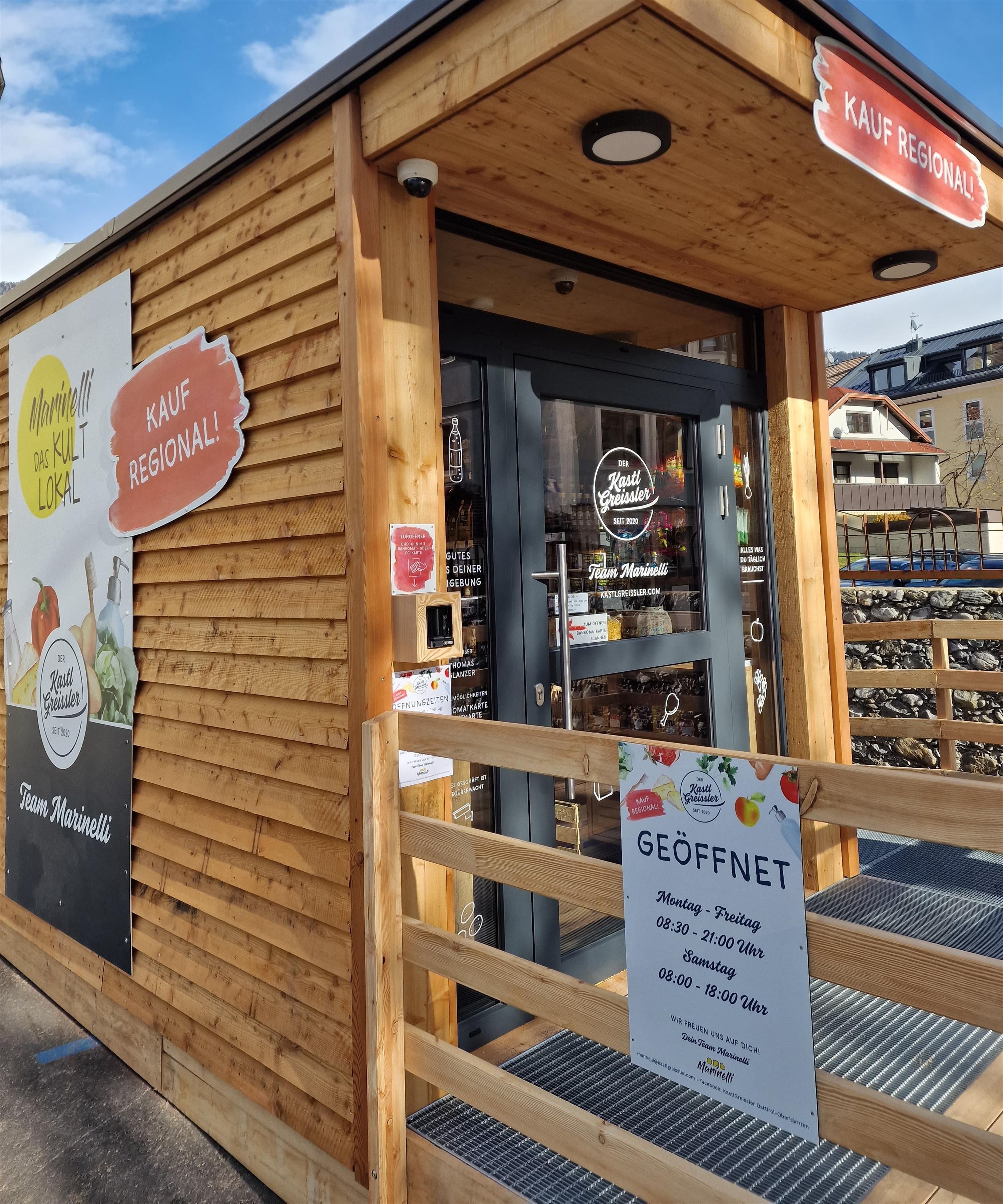 Beim KastlGreissler von Marinelli gibt es in Selbstbedienung Gutes aus deiner Umgebung und alles, was du täglich brauchst. Das angebotene Sortiment umfasst über 500 Produkte, die überwiegend von rund 40 Produzent:innen aus Osttirol und Oberkärnten kommen – von Milch über Käse bis zu Wurstwaren, Gemüse und Brot. Überregionale Köstlichkeiten und Praktisches für den Alltag machen das Angebot komplett. Außerdem gibt es im KastlGreissler eine große Auswahl an Gerichten direkt aus der Küche vom allseits bekannten Gasthaus Marinelli. Ob Cordon-Box, Knödeln in diversen Sorten, Schlipfkrapfen, hausgemachten Tee oder Eingemachtes. Unbedingt probieren!