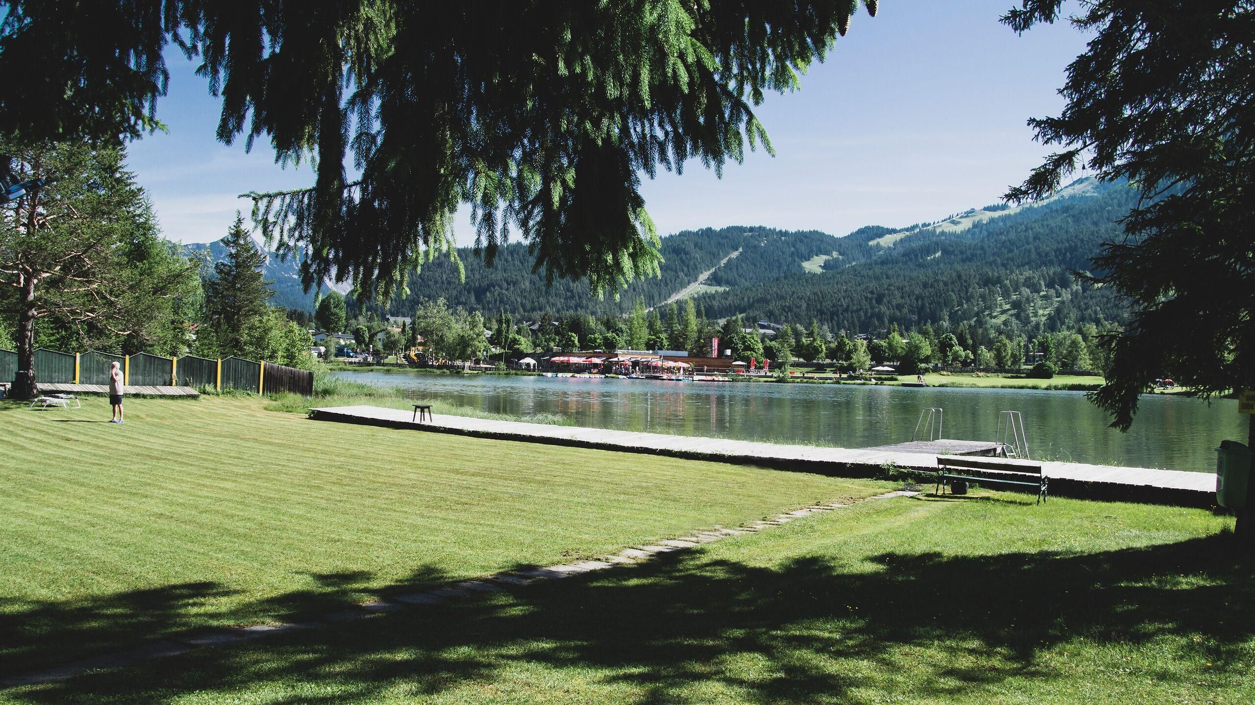 Das Waldbad Sonja verfügt über eine herrliche Liegewiese mit einem direkten Zugang zum Wildsee.