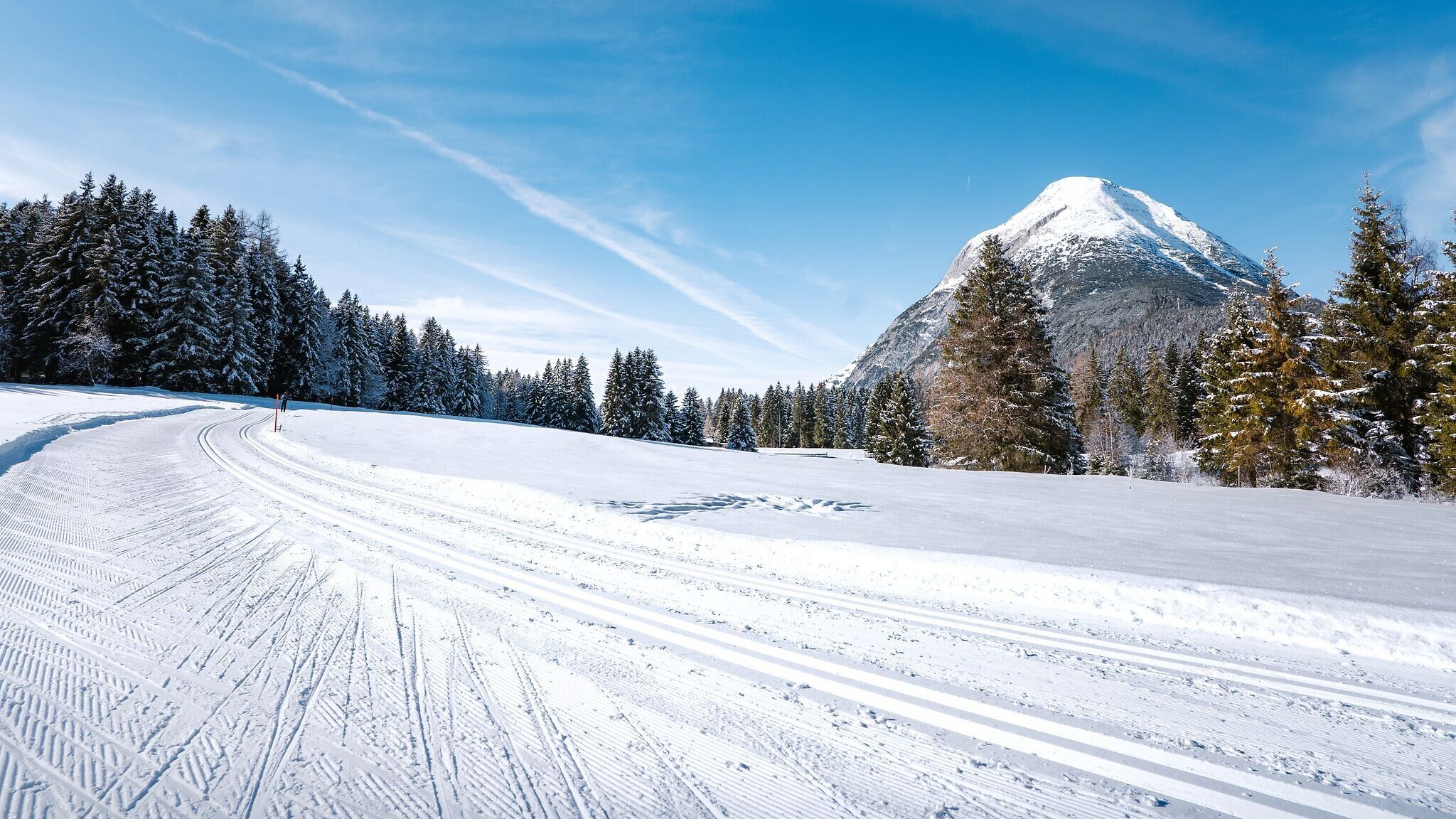 Ideal für Anfänger, Skater und klassische Läufer, mit wunderschönem Blick auf die Hohe Munde.