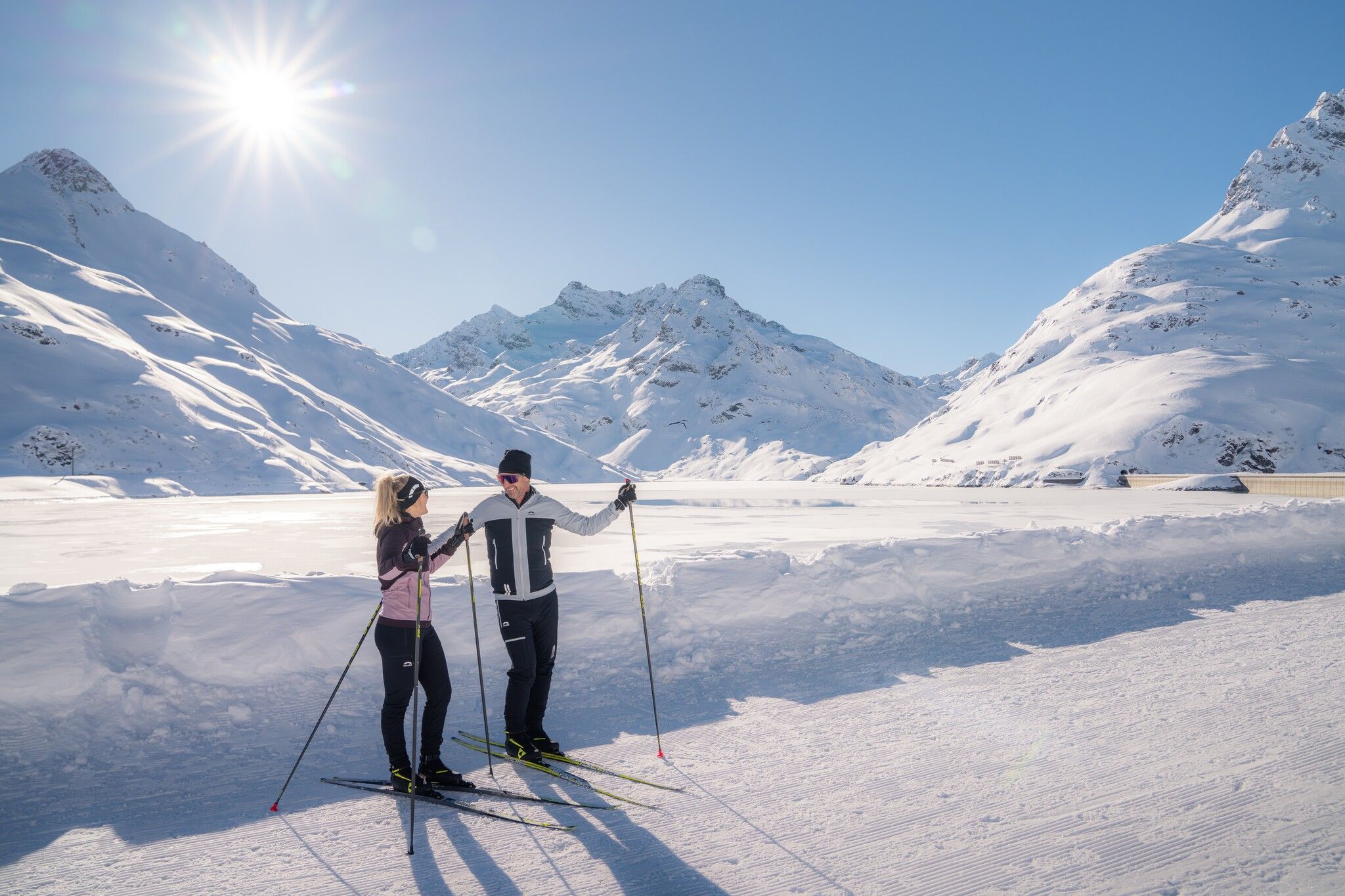 Die Silvretta Höhenloipe Mittel führt auf 2 Kilometern durch die hochalpine Landschaft der Bielerhöhe. Der Rundkurs startet am Silvrettahaus und bietet mittlere Steigungen, ideal für Langläufer, die eine sportliche Herausforderung suchen. Während der Tour genießt du eindrucksvolle Ausblicke auf den Silvretta Stausee und die umliegenden Gletscher. Die Loipe ist perfekt kombinierbar mit der Dammloipe sowie den Höhenloipen Klein und Groß.