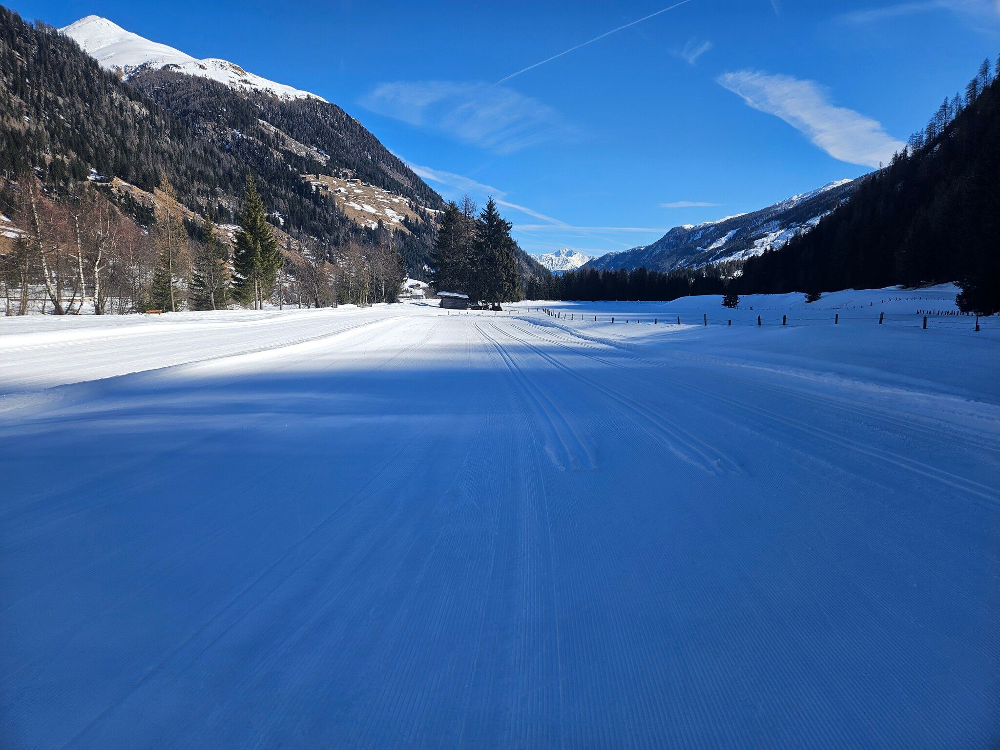 Langlaufen Blusenrunde © Peter Maier Unterfeldloipe PrägratenÖffnungszeiten:GeöffnetSchwierigkeit:leichtLänge:3,3 kmHöhenmeter bergauf:36 m:Stil: klassischZur LoipeZur Loipe: Unterfeldloipe Prägraten