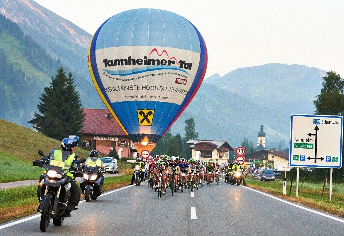 Wegbeschreibung:Start im Zentrum von Tannheim über Grän, Tannheim, Zöblen, Schattwald über die STAATSGRENZE nach Oberjoch und Unterjoch. Auf deutschem Staatsgebiet wird Wertach, Kranzegg, Rettenberg, Immenstadt und Altmummen (1. Verpfelgung) durchfahren. Der Abstecher ins landschaftlich reizvolle Gunzesrieder Tal führt dann wieder heraus nach Bihlerdorf und über Hüttenberg Richtung Ofterschwang, Bolsterlang bis Obermaiselstein zur 2. Verpflegung. Hier beginnt Deutschlands höchste Passstrasse mit dem Riedbergpaß auf 1.407 Meter. Nach der schwierigen Abfahrt wird Balderschwang und die 3. Verpflegung erreicht. Am Anschluss wird die STAATSGRENZE nach Vorarlberg passiert und durch die Orte des Bregenzerwald, Hittisau, Lingenau, Müselbach wird Egg erreicht. Ein Rechtsabbieger nach Schwarzenberg und weiter entlang der Bregenzer Ache flußaufwärts durch Mellau, Au (4. Verpflegung) und Schoppernau zum Fuße des Schröckenpass, der bis auf eine Höhe von 1.676 Meter Seehöhe führt. Danach folgt eine schnelle Abfahrt bis Warth zur 5. Verpflegungsstation. Weiter über die LANDESGRENZE nach Tirol und auf der B198 nach Steeg, Holzgau, Schönau (6. Verpflegung), Bach, Elbigenalp, Häselgehr, Elmen, Stanzach bis nach Weißenbach wo die 7. Verpflegungsstation angefahren wird. Danach links abbiegen auf die B199 über den Gaichtpass, vorbei an Nesselwängle und dem Haldensee zurück nach Tannheim.
