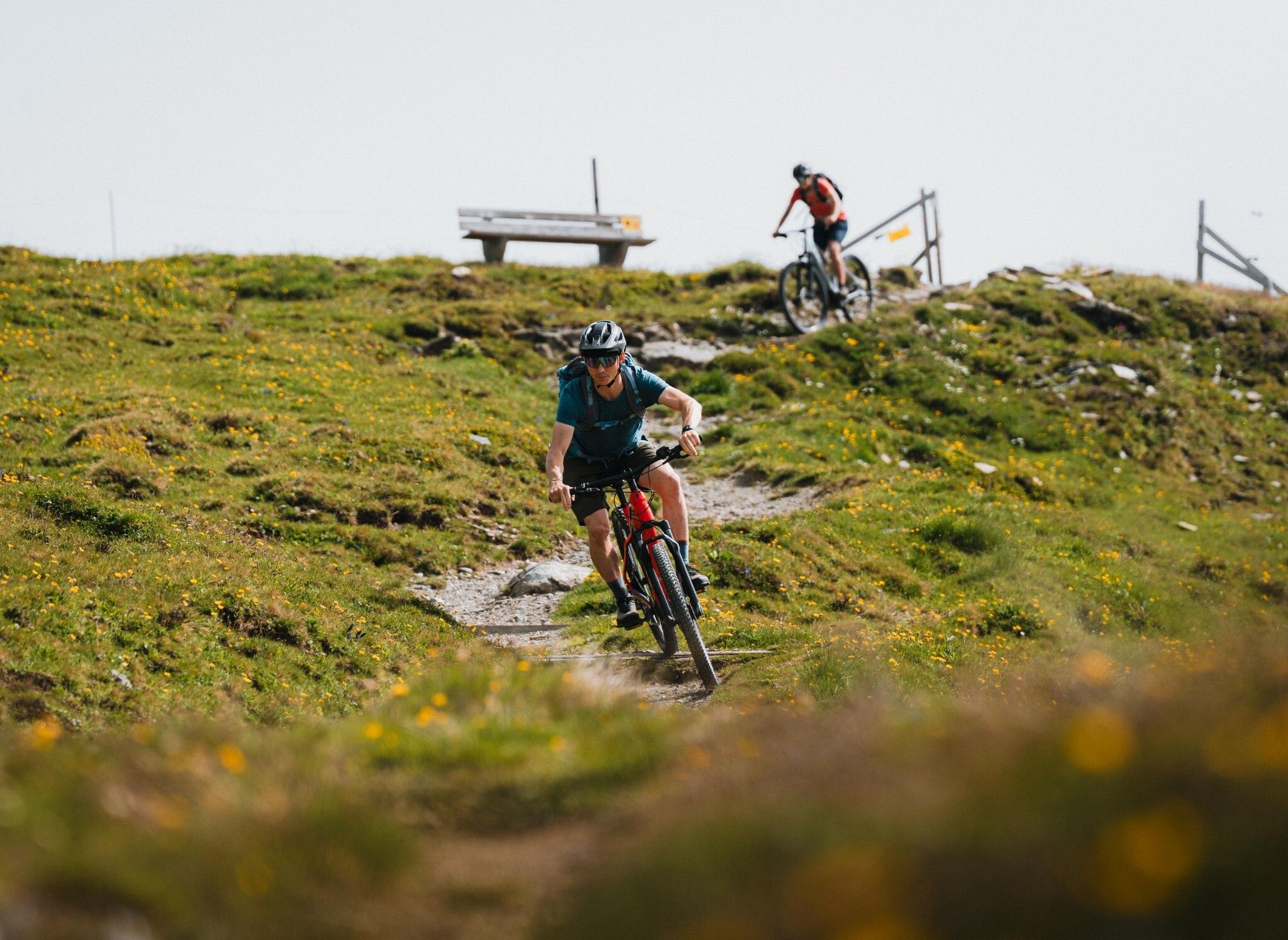Singletrail geübte Mountainbiker mit spektakulärer Aussicht.