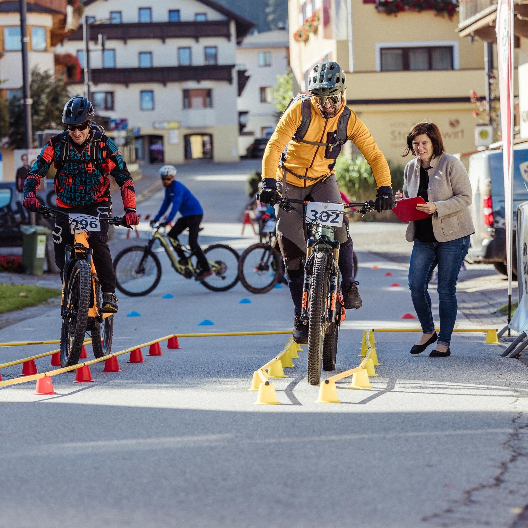 Entlang der Strecke warten unterschiedliche Herausforderungen auf dich, wie Hill Climb, Parcours und vieles mehr.