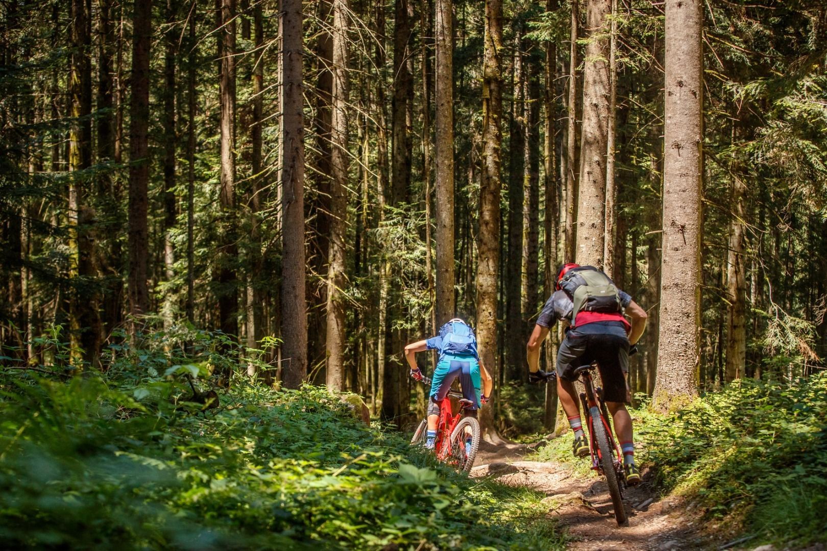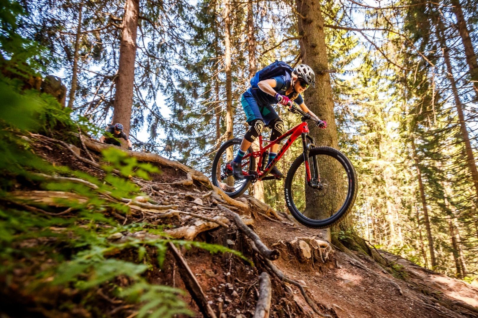 Flowiger Trail mit einfacheren Schlüsselstellen und verspielten Elementen. Engere Kurven und Steilkurven, Holzbrücken und naturbelassene Passagen, kleine Wellen und Absprünge sowie natürliche Hindernisse bieten Abwechslung.
