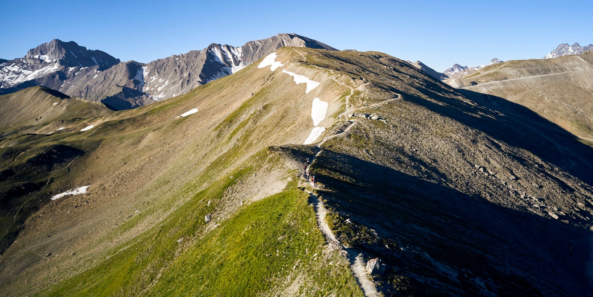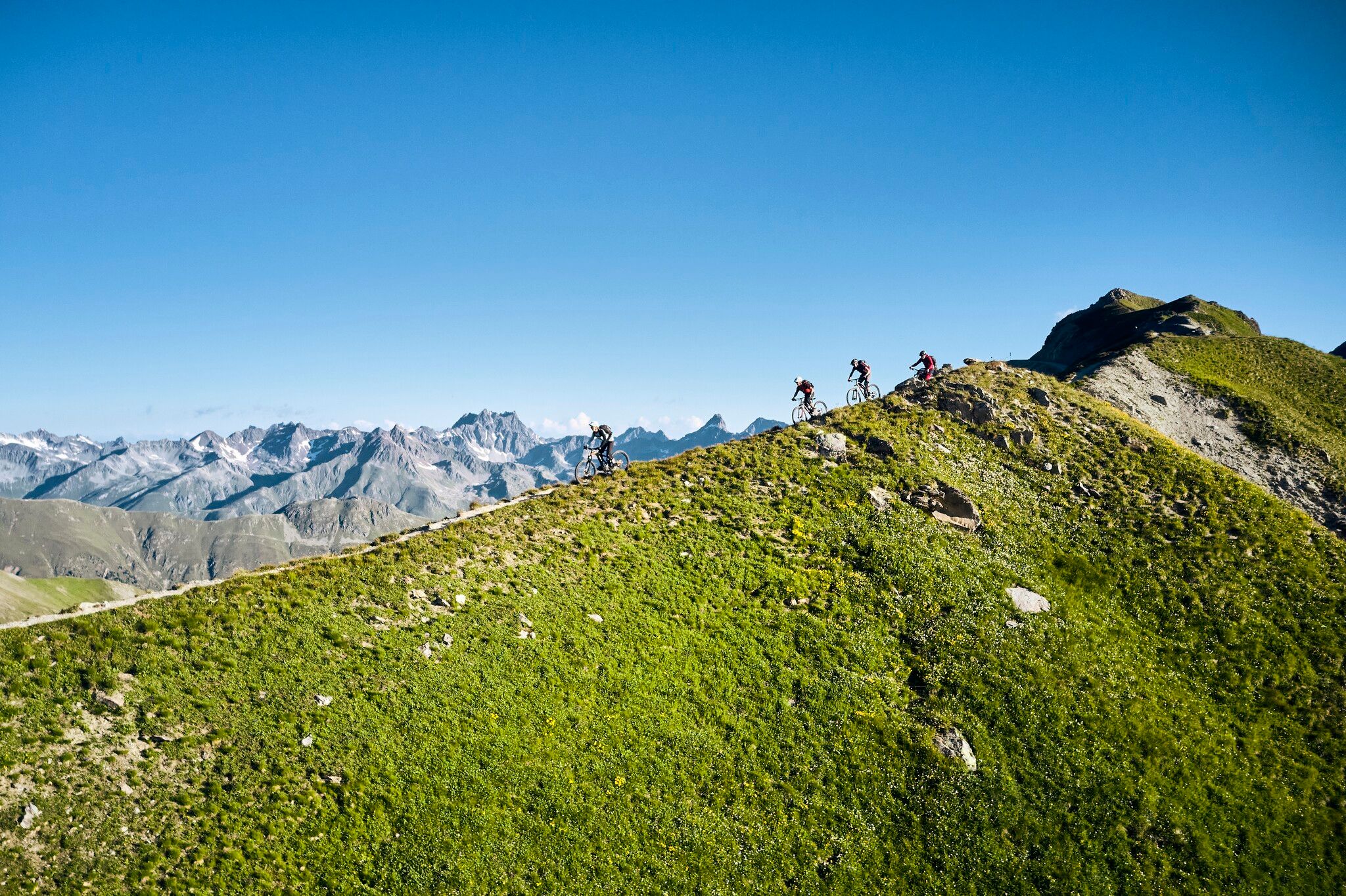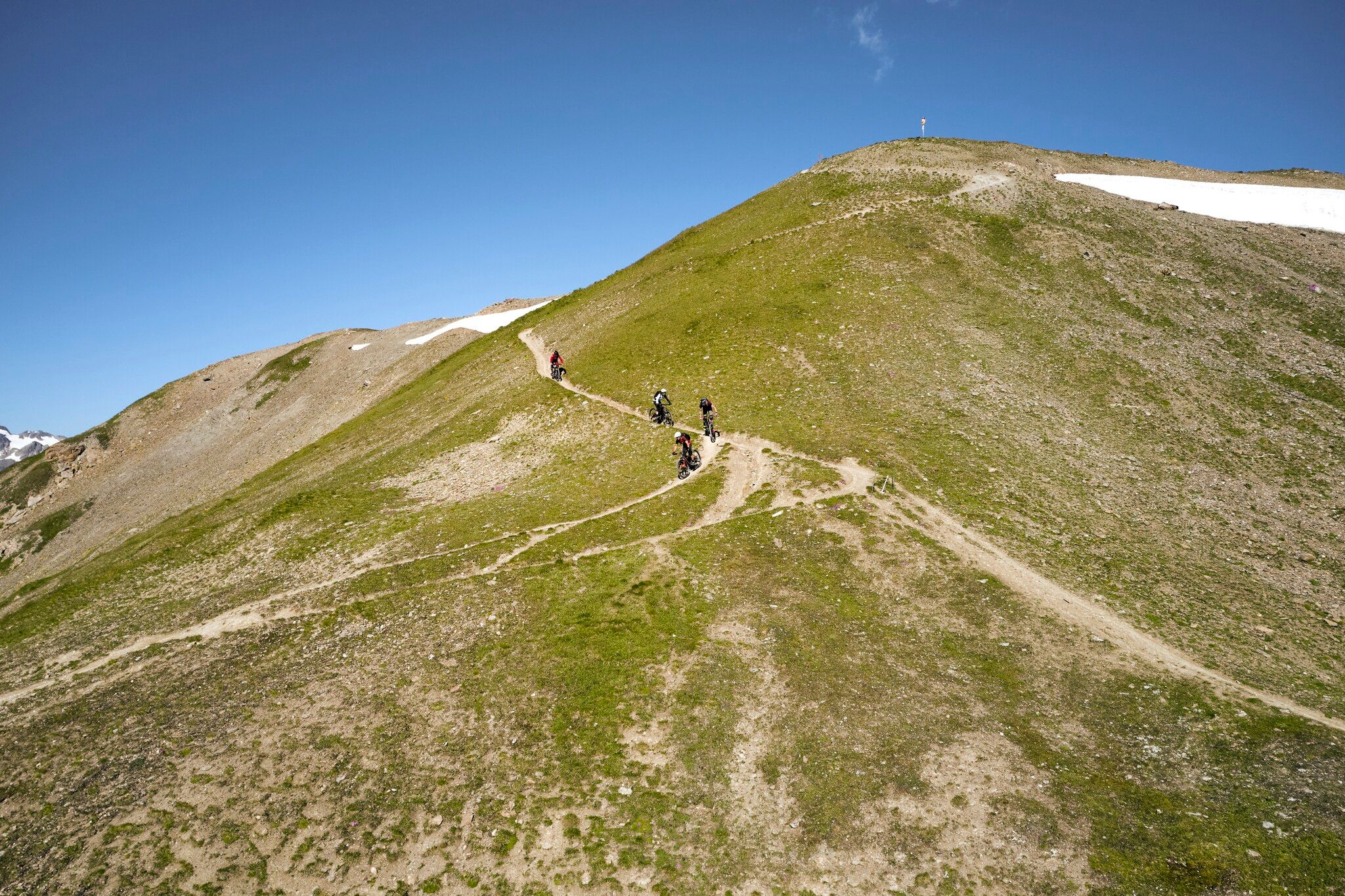 Mit der doppelstöckigen Luftseilbahn geht es zur Bergstation Alp Trider Sattel, von wo aus es über eine leichte Downhill-Passage bergab nach Planer Salaas geht. Ab Planer Salaas verläuft ein Trail bergauf zum Salaaser Eck und weiter durch den Ravaischer Salaas, vorbei an beeindruckenden Gipslöchern, bis hinauf zum Bergli. Vom Bergli aus folgt ein Singletrail hinunter in Richtung Zeblas. Die abschließende Abfahrt führt auf einer kurvenreichen Straße hinunter nach Samnaun Dorf. Einige steile Passagen erfordern hier besondere Aufmerksamkeit. Im Winter verwandelt sich dieser Abschnitt in die beliebte Skipiste 80, bekannt als Duty Free Run. Der Salaaser Kopf Trail verspricht eine unvergessliche Fahrt durch eine beeindruckende Alpenlandschaft, perfekt für ambitionierte und erfahrene (E-)Mountainbiker.