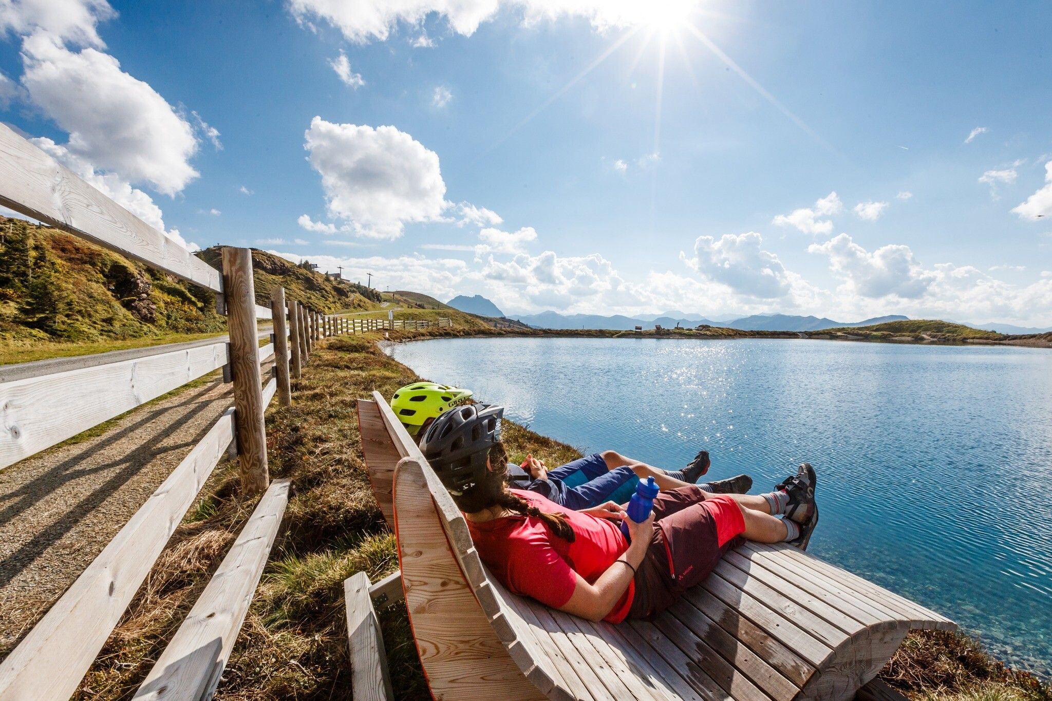Gestartet wird die Tour in Hopfgarten und sie zeigt gleich zu Beginn, was sie zu bieten hat: es geht hinauf auf die Kleine Salve und Hohe Salve, wo ein unglaublicher Weitblick auf die Biker wartet. Anschließend führt der KAT Bike nach Brixen im Thale, von hier über das Spertental nach Kitzbühel und Oberndorf. Weiter geht es über den Harschbichl mit dem Kitzbüheler Horn im Blick nach St. Johann in Tirol, Kirchdorf und weiter - wie der KAT Bike E-njoy – nach Waidring und St. Ulrich am Pillersee. In Fieberbrunn führt der letzte Anstieg zur Lärchfilzhochalm und Mittelstation Streuböden, bevor es ans Etappenziel im Ort Fieberbrunn geht.