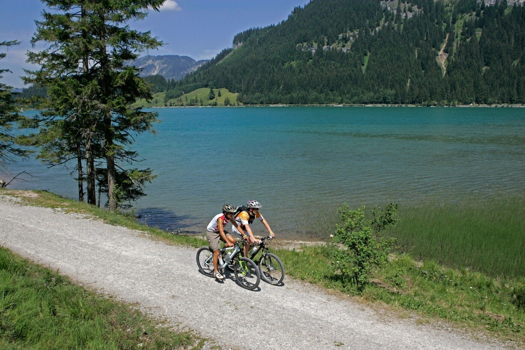 Die Umgebung kennenlernen kann man auf dem „Radwanderweg Tannheimer Tal“, der auf 40 Kilometern die schönsten Ecken des Tiroler Hochtals passiert. Die Radwanderwege sind abseits von der Bundesstraße und einheitlich beschildert. Über Schattwald in Richtung Rehbach kommt man nach Ober- und Unterjoch im Allgäu - verweilen Sie einen Moment am Moorweiher „Floschen“. Oder radeln Sie durch Tannheim und Grän weiter auf der neuen Uferpromenade am Haldensee bis nach Nesselwängle. Ein Abstecher ins Naturschutzgebiet Vilsalpsee wird Ihnen bestimmt gefallen.